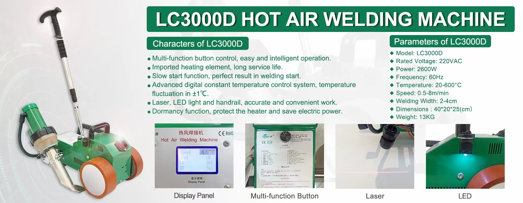 Он использует передовую технологию управления PID и регулирует мощность, чтобы сделать температуру более постоянной автоматически, колебания в пределах 1 градуса. Эта функция может сделать результат сварки более сильным.