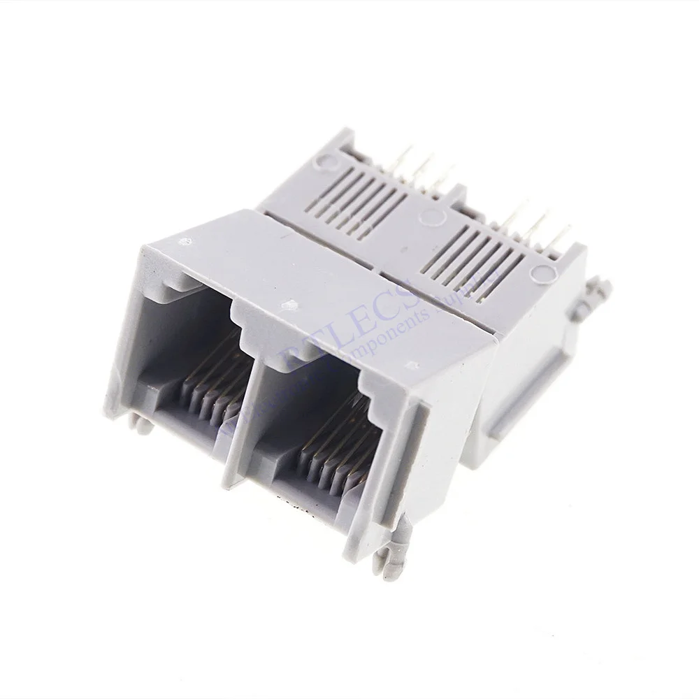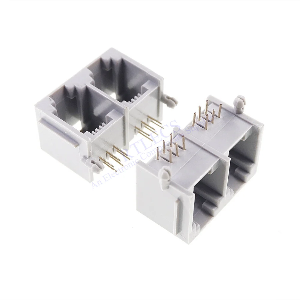 Двойной порт RJ11 RJ12 Разъем модульный 6P6C правый угол через отверстие PCB припой неэкранированный