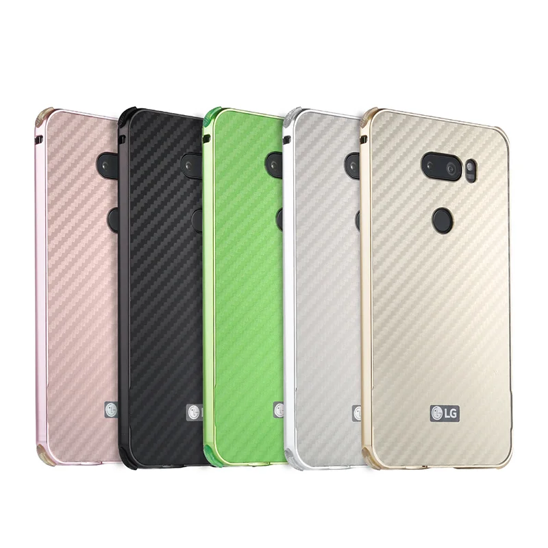 For LG V30 Case New Aluminum Metal Frame+Carbon Fiber Hard Back Cover Case Shockproof Phone Shell
