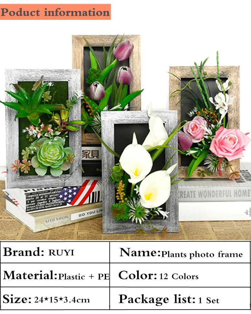 Материал: пластиковая фоторамка + ПЭ Растения + Шелковый цветок