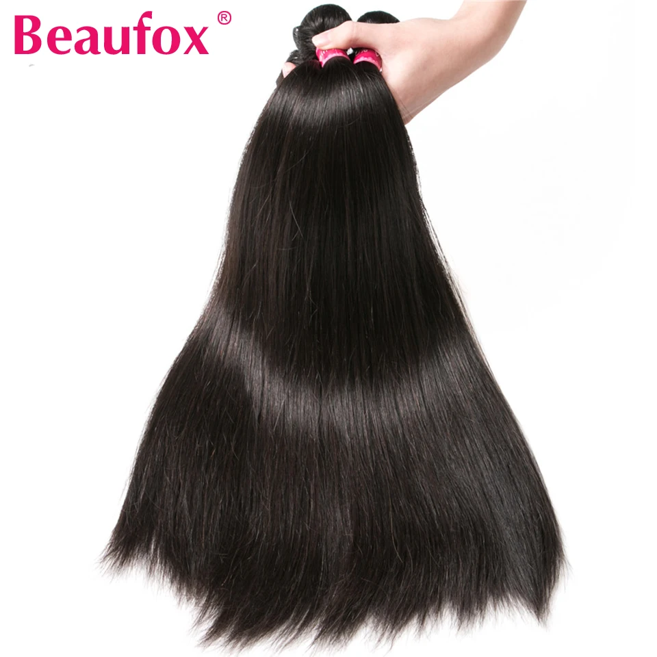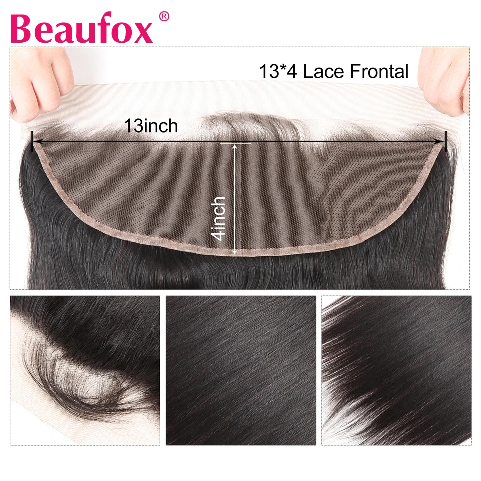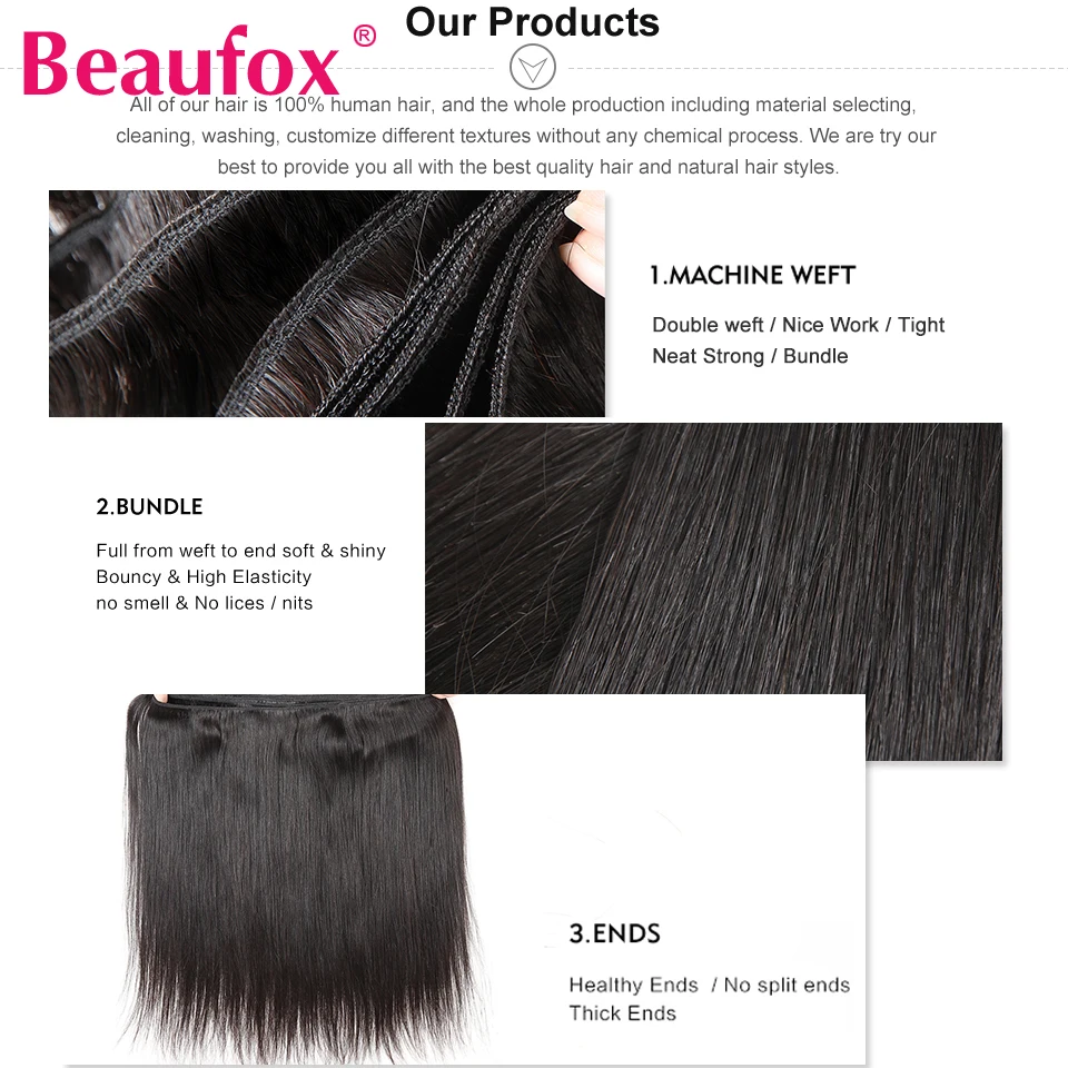 Beaufox бразильские прямые человеческие волосы 3 пряди с кружевной фронтальной застежкой с пряди бразильские волосы плетение пряди Remy