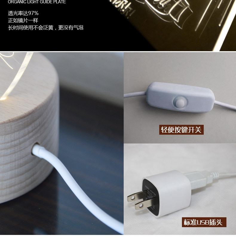 Деревянная основа + 3 знака после оптический переключатель 1,5 м USB линия передачи данных (отправить штекер)