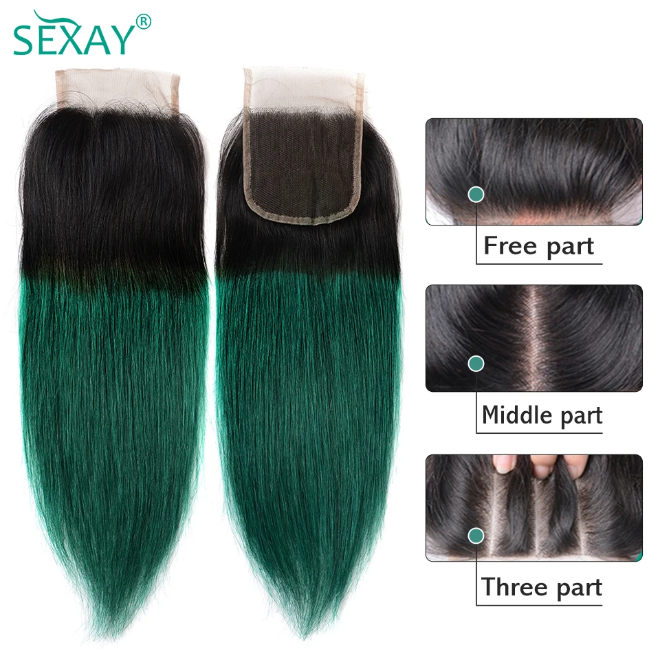 Sexay, бирюзовые прямые волосы, 4 пряди, с кружевами, 10 А, Омбре, 1B, зеленые, перуанские, прямые, человеческие волосы, плетение и фронталы