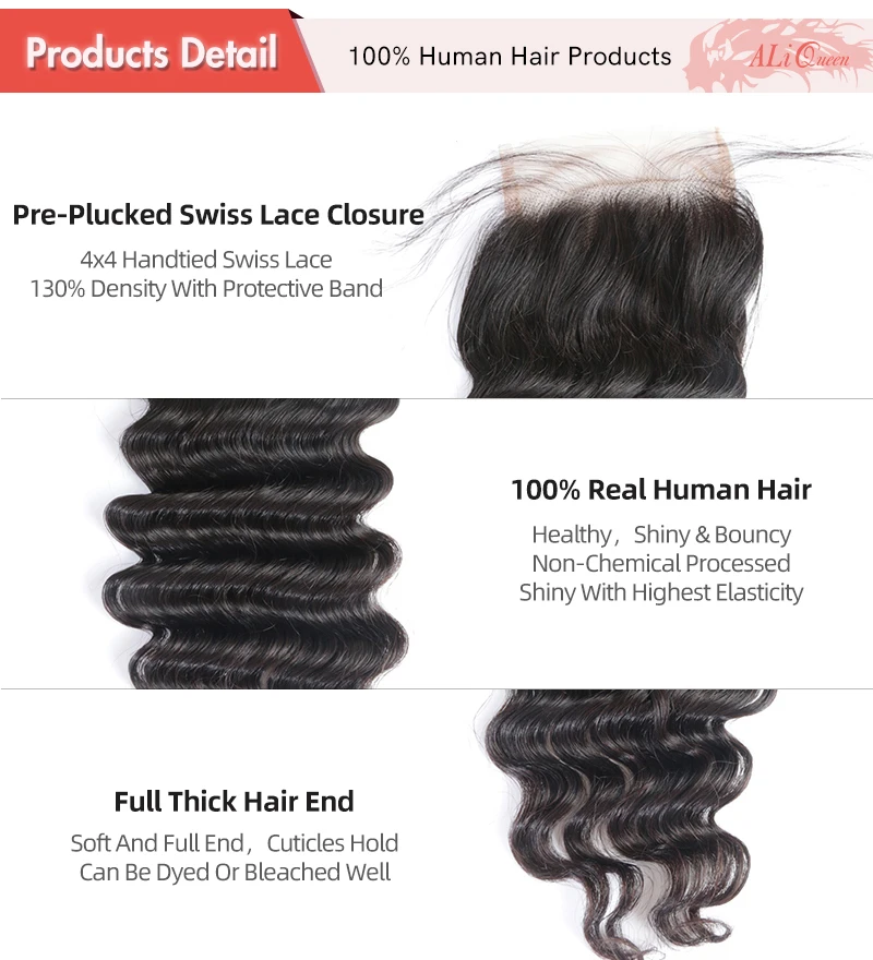 Наименование товара: Бразильские свободные глубокие пряди человеческих волос с закрытием Бренд: Ali Queen Hair Products Co., Ltd Цвет волос: натуральный черный цвет, может быть окрашен и отбелен. Текстура застежки: швейцарское кружево Размер застежки: 4x4 / 13x4 с плотностью 130% Длина волос: 12 "~ 26" Материал волос: 100% человеческие волосы высокого качества Время доставки: около 2-5 дней по DHL/FEDEX Характеристика: здоровая, полная и упругая текстура