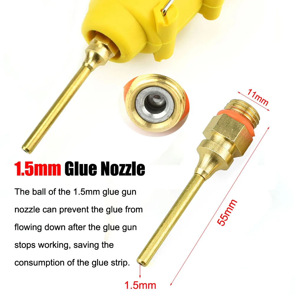 Специальная конструкция для клеевого сопла, также мы предлагаем 1 медное сопло 1,5 мм и конструкцию с защитой от протекания.