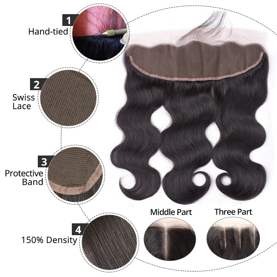 Пряди имеют дело с закрытием. 13x4 кружева фронтальные уха к уха Кружева закрытия
