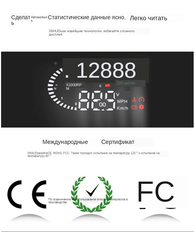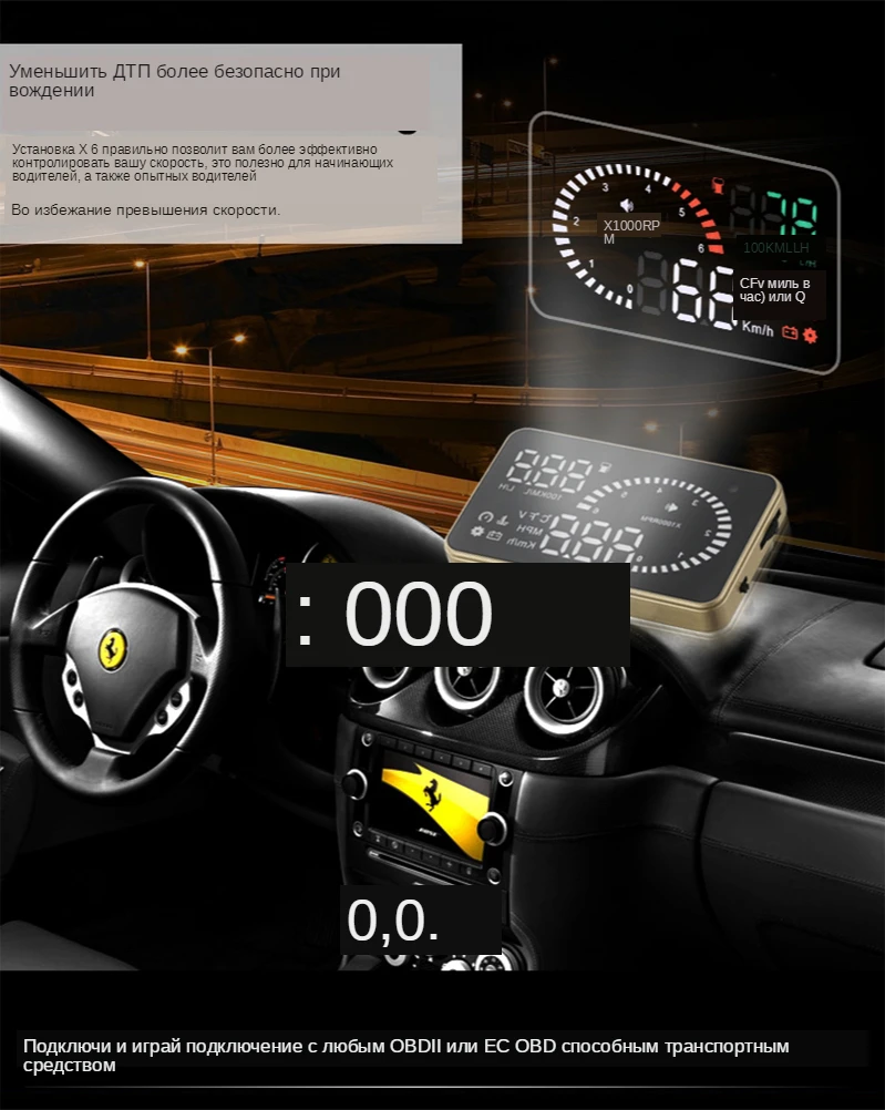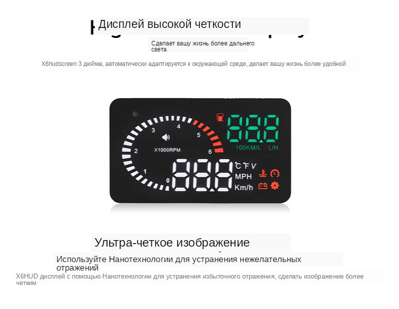Этот HUD может отображать много полезной информации и позволяет испытать скорость, а также обеспечить безопасность вождения и удовольствие от вождения. И он принимает новейшие стабильные интегральные схемы, все индексы соответствуют стандартам. И наш HUD имеет уникальную и элегантную форму, гладкие линии, тонкий корпус.