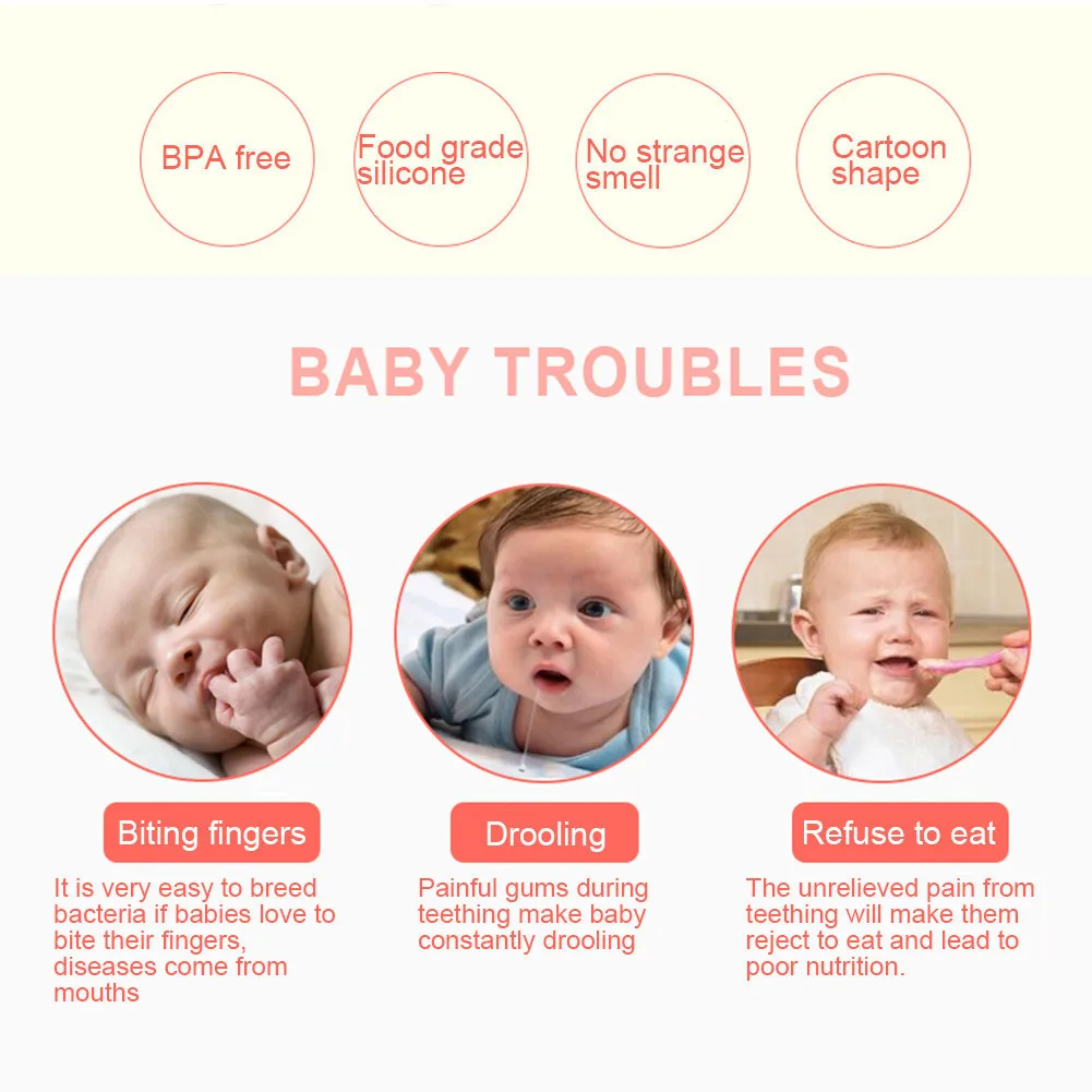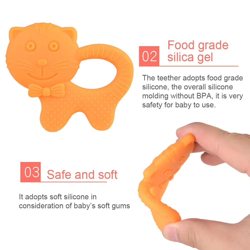 Baby Teether Cartoon Comfort Pacified Teething Toys New Safety Animal Shape Baby Teether Food Grade Silicone Solid Dental Care