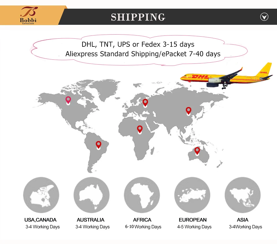 This short hair default shipping method is Express Shipping by TNT /Fedex or DHL. It can arrive within 5-15 days normally.