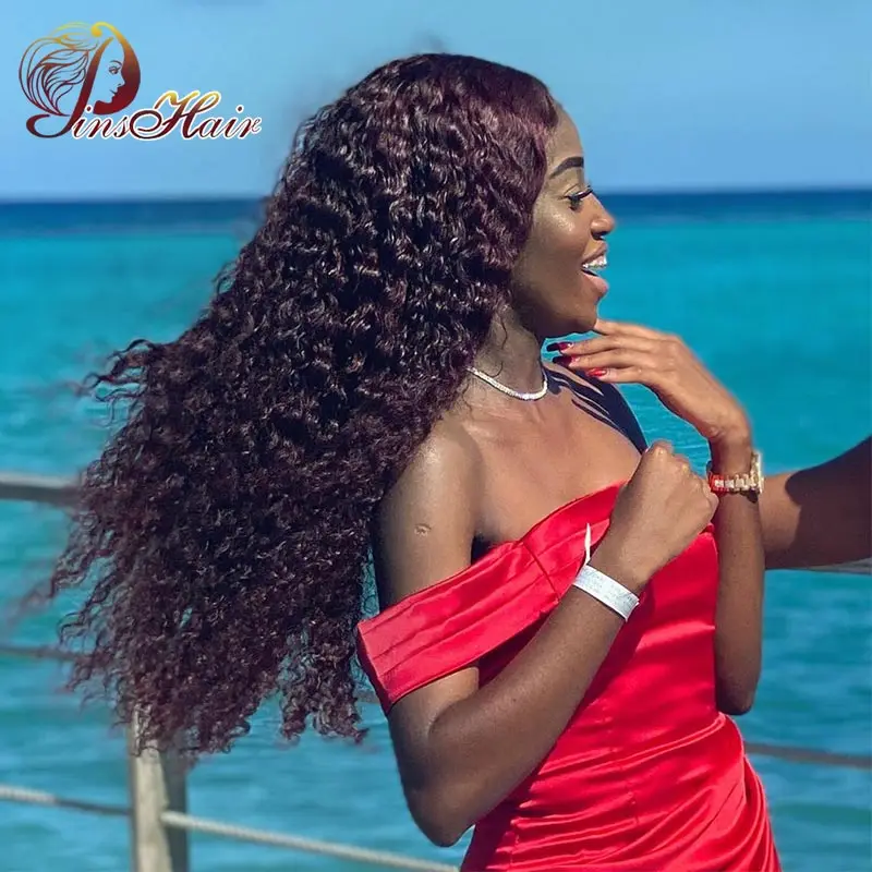 Бразильские вплетаемые волосы 3 пряди с закрытием темно-красные волнистые пряди с закрытием красный 99J Pinshair 100 Пряди человеческих волос человеческие волосы Remy для наращивания комплект