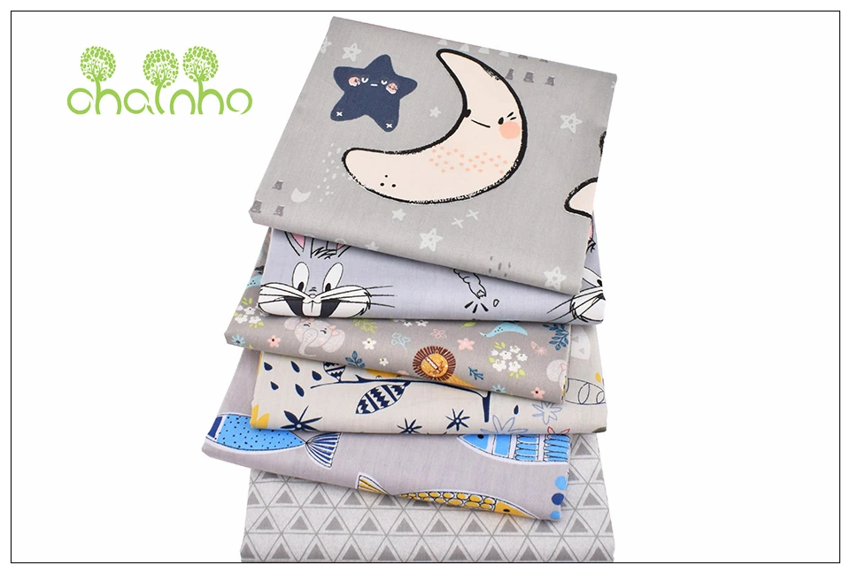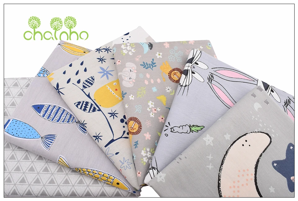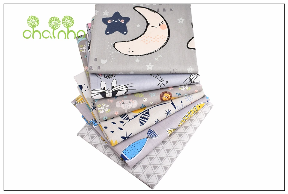 Chainho,6 шт./лот, серая хлопковая ткань с рисунком из мультфильма, Лоскутная Ткань, шитье своими руками, стеганый материал для малышей и детей