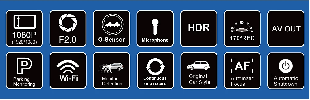 Приложение Встроенный модуль Wi-Fi, вы можете смотреть записанные видео, загружать видео, поделиться видео с видеорегистратора на свой смартфон через WiFi. Примечание: Из-за проблем с дизайном приложения, он не может поддерживать весь смартфон. В этом случае вы можете использовать свое местное приложение для вашего смартфона. Спасибо Вы можете скачать приложение Apple Store или другие Android маркеты. Поддержка AV-OUT Видео будет непосредственно на ваш автомобильный монитор, дисплей в режиме реального времени. Он не поддерживает сенсорный экран в вашем автомобильном мониторе. Встроенный g-сенсор Сохраните важное видео в специальной папки, чтобы оно не было перезаписано в экстренном случае, вы должны включить g-сенсор с помощью приложения. 24 часа на постоянной основе гвардии Когда ваш автомобиль выключен, он может работать в режиме записи низкой частоты кадров, ему нужно немного энергии от батареи. Сделайте безопасность вашего автомобиля!