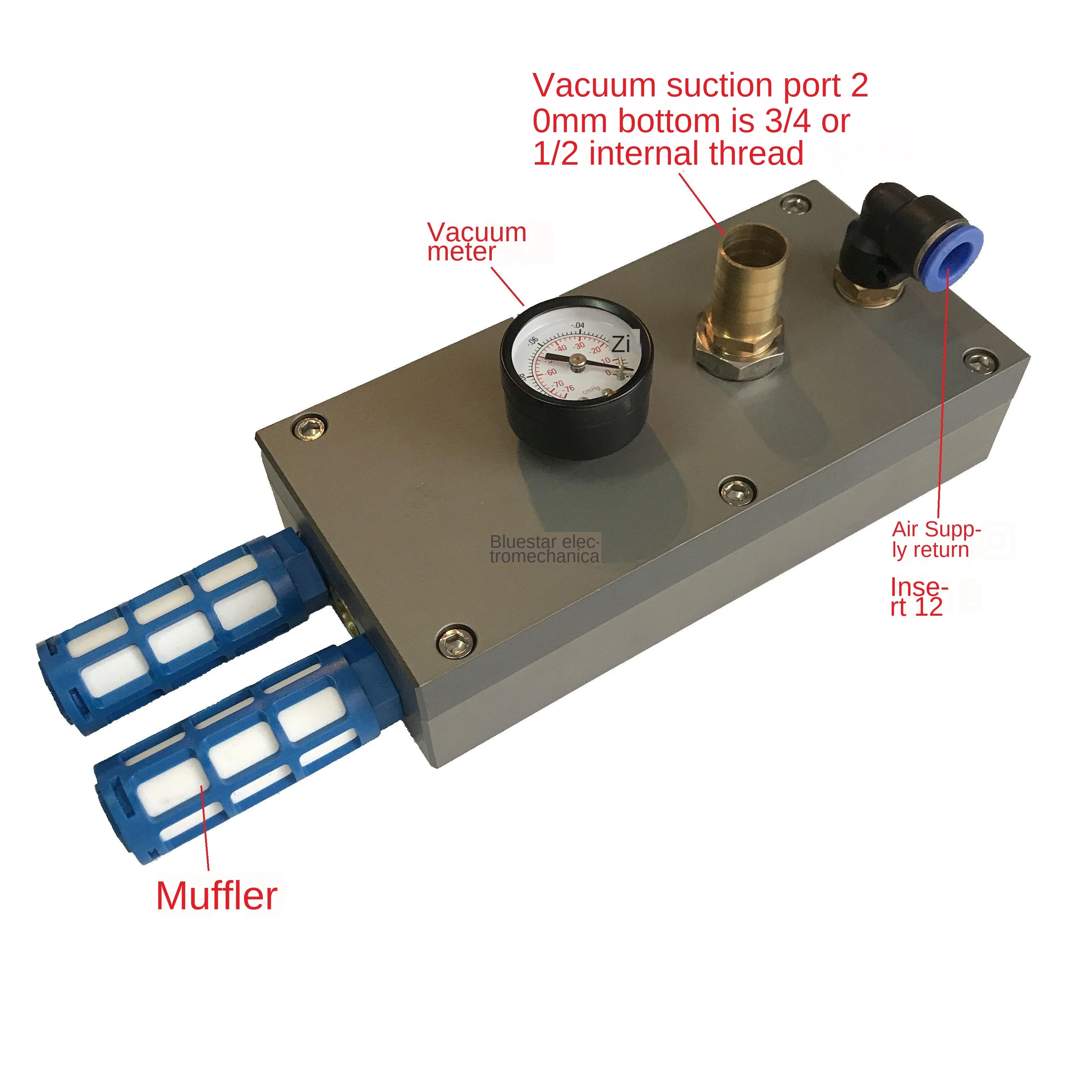 Домашний многоступенчатый вакуумный генераторVTM700-06, Максимальный вакуум-85 кПа, Ингаляционный поток 700л/мин,Расход воздуха270 л/минИнтерфейс подачи воздухаRc1/2,Вакуумный всасывающий интерфейсRc3/4С вакуумным манометром.