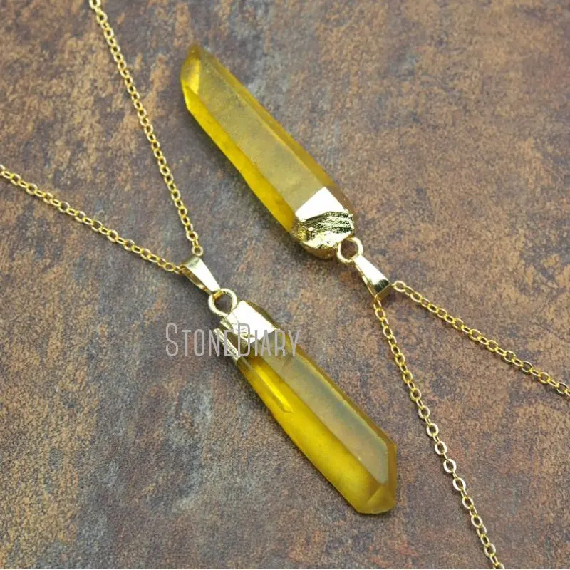 NM11574 желтое Кристальное ожерелье Quartzs свадебное ювелирное изделие золотое покрытие граненная Шестигранная Призма хрустальное ожерелье Quartzs