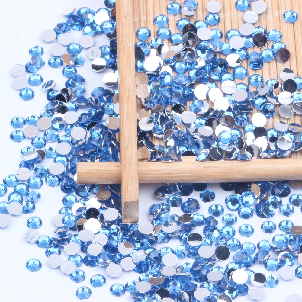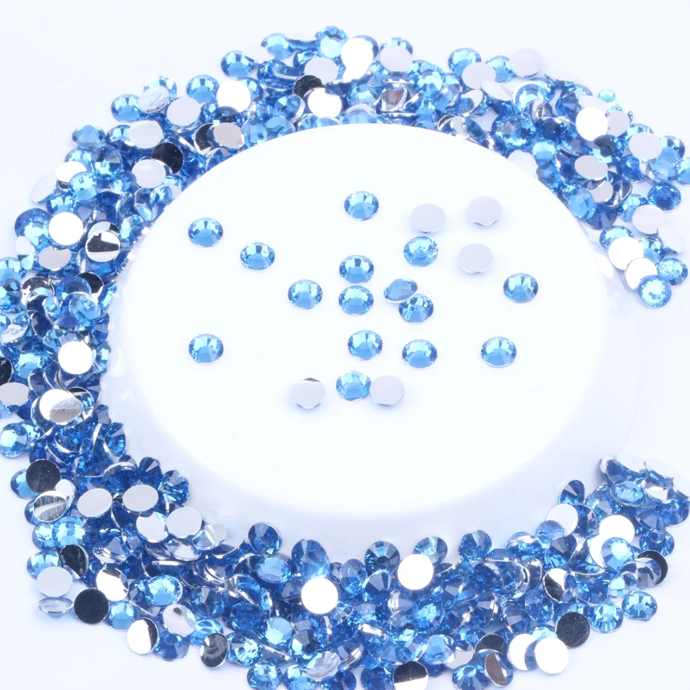 Небесно-голубые стразы из смолы 2-6 мм, круглые стразы с плоской задней поверхностью, без горячей фиксации, аппликации для рукоделия, тканевые свадебные платья