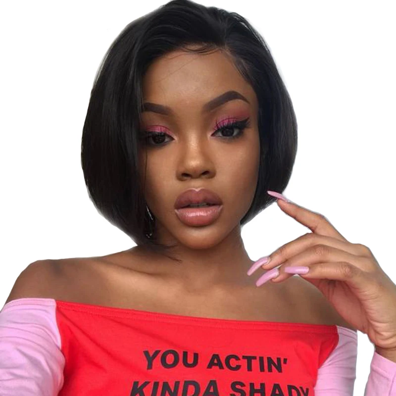 Парик Боб, парик из кружева, Короткие парики из человеческих волос, Короткие парики, перуанские прямые волосы для черных женщин, коричневый натуральный цвет