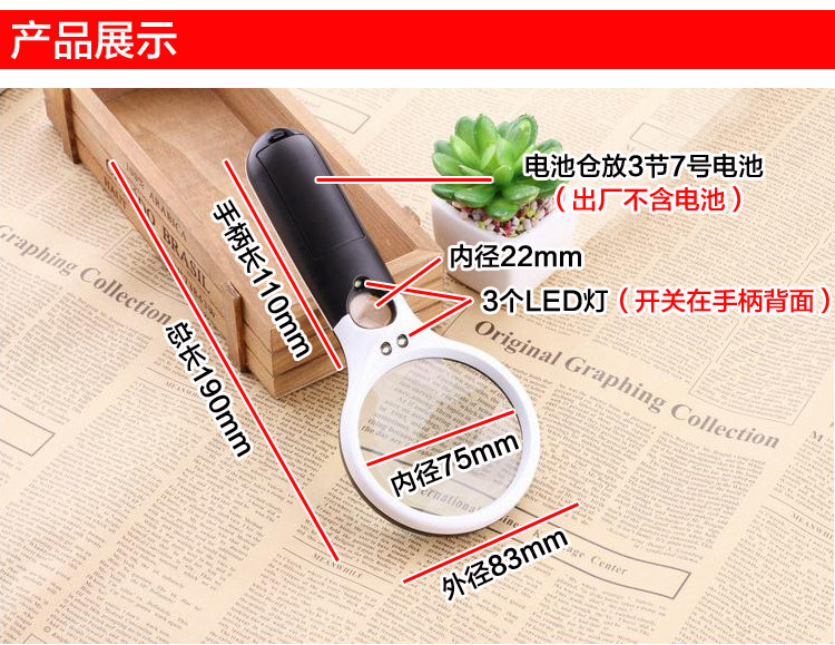 Муу ручной 3X 45X Лупа с 3 светодиодами Ювелирные изделия Лупа качество ABS тело оптическая линза для чтения увеличительное стекло помощь для пожилых людей