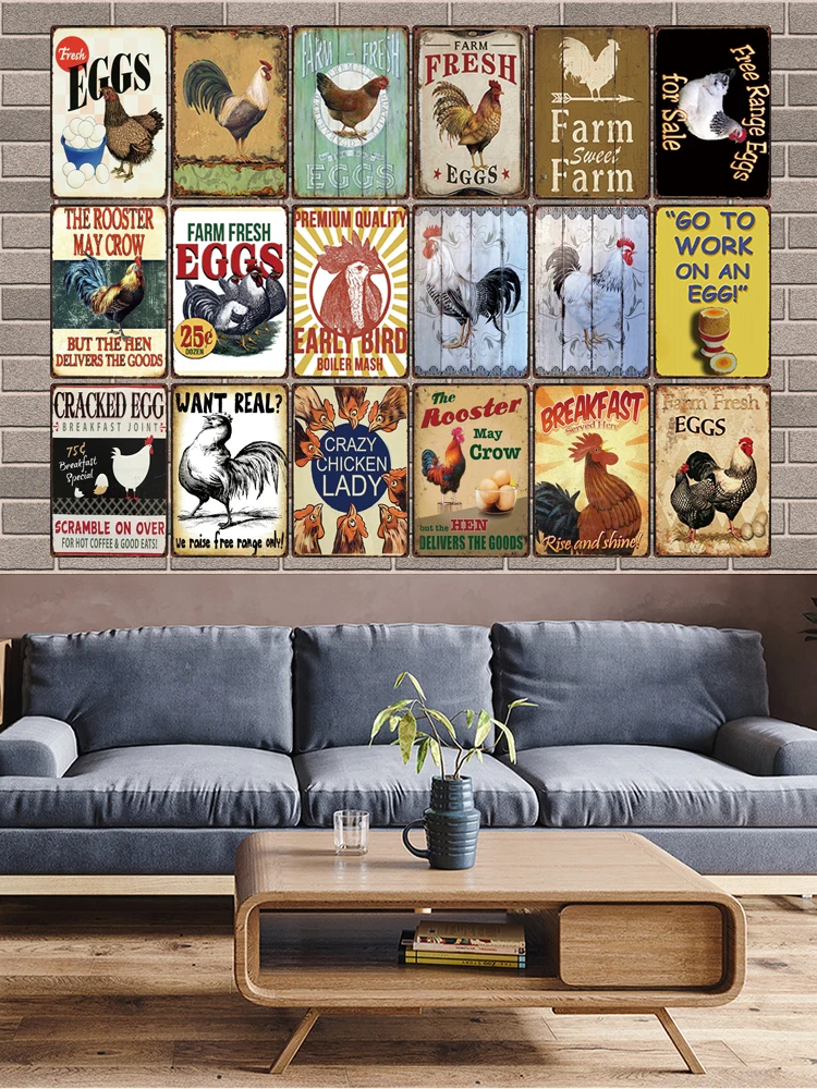 [ Kelly66 ] Fresh Eggs From Happy Chickens Vintage Metal Sign Poster Home Decor Bar Wall Art Painting 20*30 CM Size y-1435