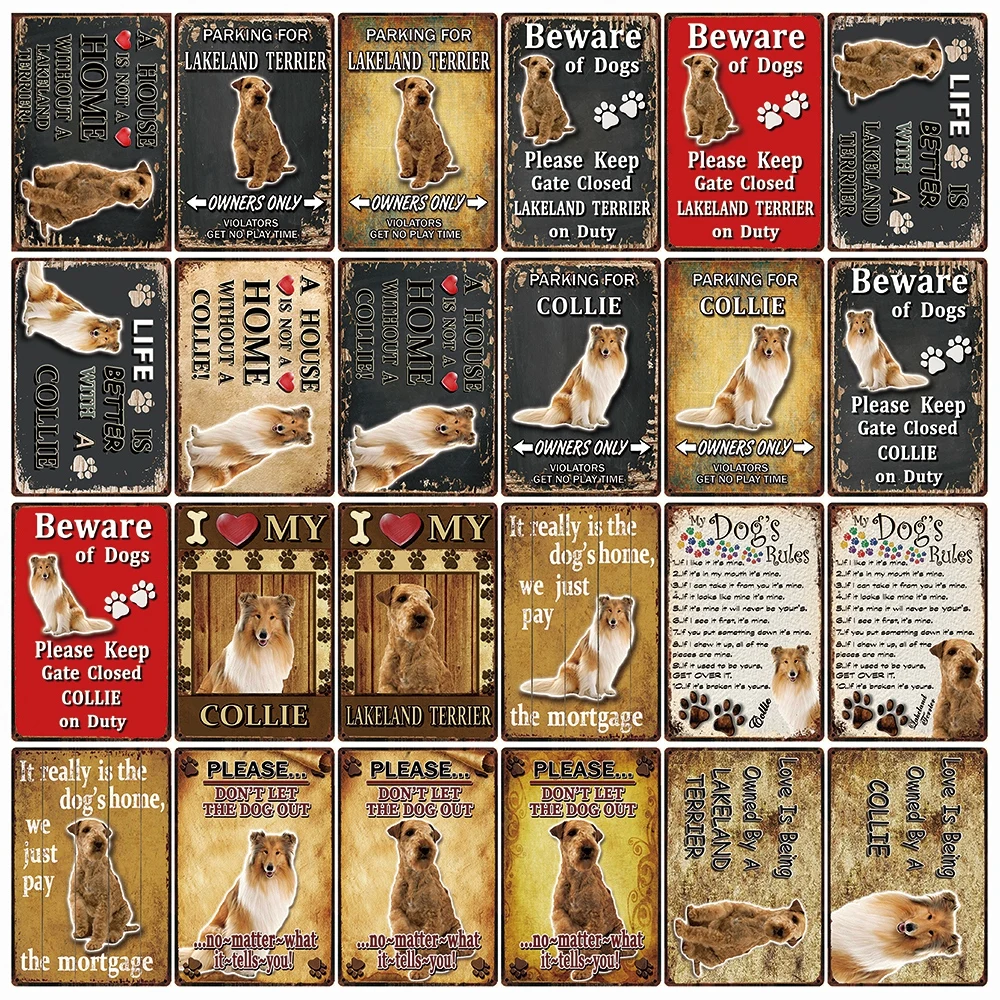 [Kelly66] ПЭТ Предупреждение собака правила лучше Лейкленд терьер колли Металлический Знак Домашний Декор Бар настенная живопись 20*30 см Размеры DG-39