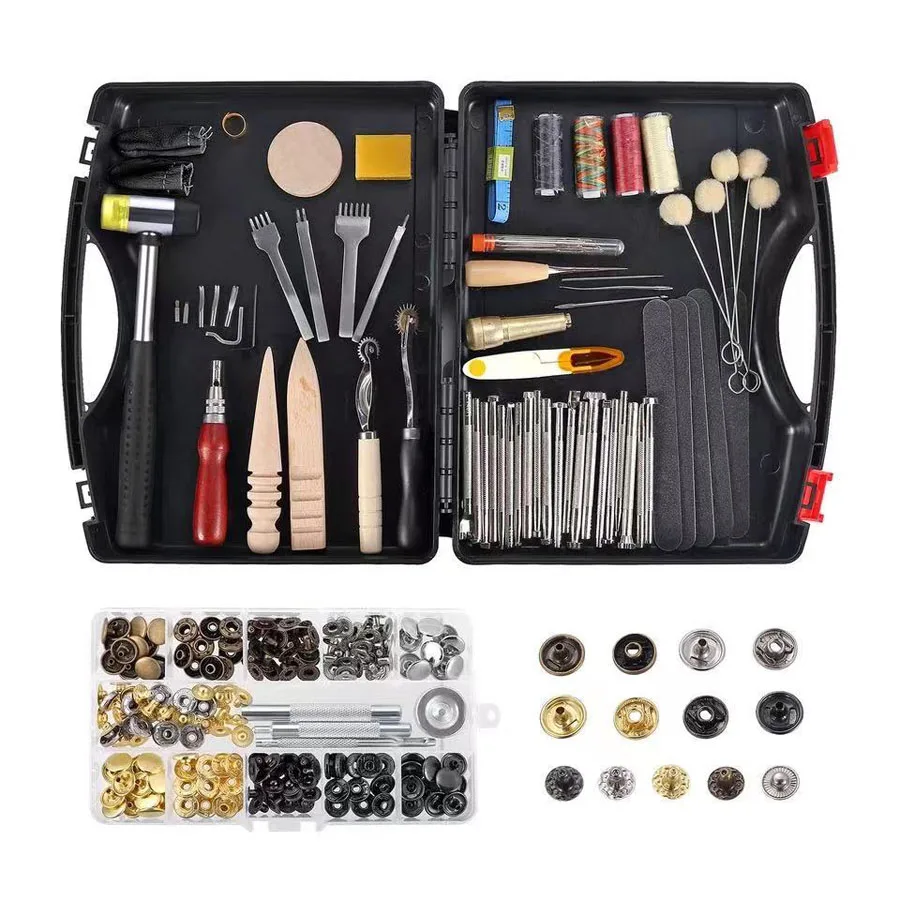 Набор кожаных инструментов 128 шт., инструмент для работы с кожей, инструменты и принадлежности для кожи с кожаным тиснением, набор заклепок, дырокол для кожаного ремесла для начинающих