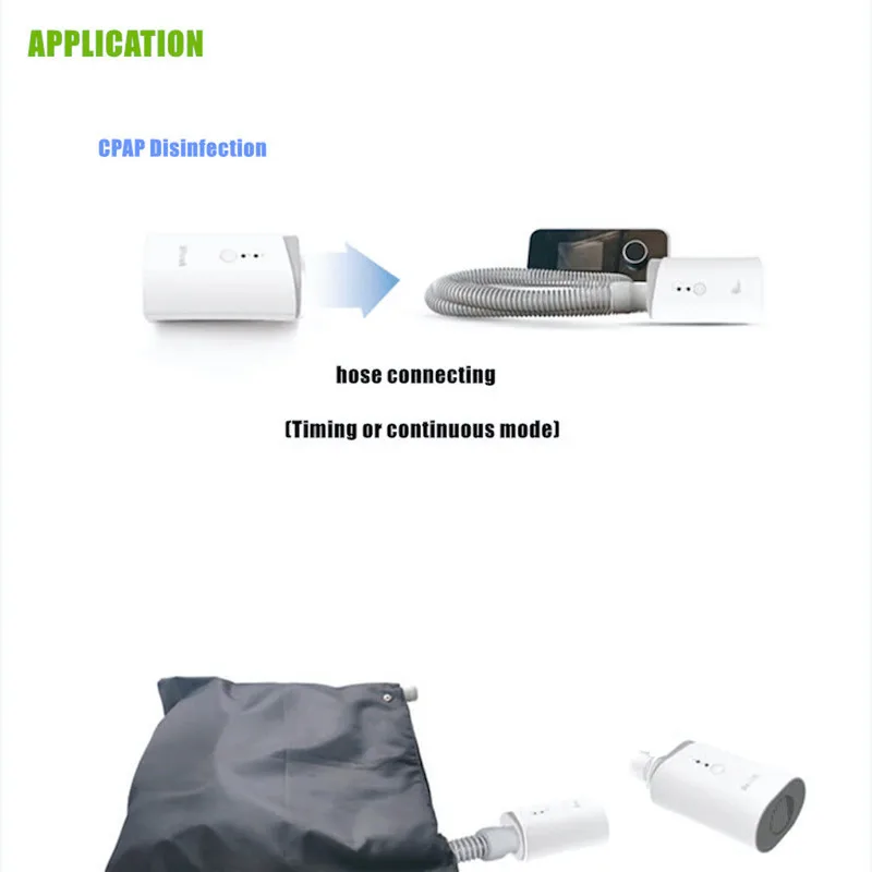Стерилизатор для вентиляционной системы СИПАП АПАП БИПАП с перезаряжаемым аккумулятором, дезинфицирующий аппарат 2 000 мА для прибора профилактики апноэ сна, СОАГС, СОАСПростой в управлении и легкий в переноске, предназначен для влажной дезинфекции против большинства быстро подхватываемых бактерий внутри механизма вентиляции и трубок.Стерилизация против бактерий с помощью озона, его функций и характеристикУничтожение микроорганизмовИнгибирование грибковПротивовирусная обработкаПо желанию, также дополнительная детоксикацияТехнические характеристики:
