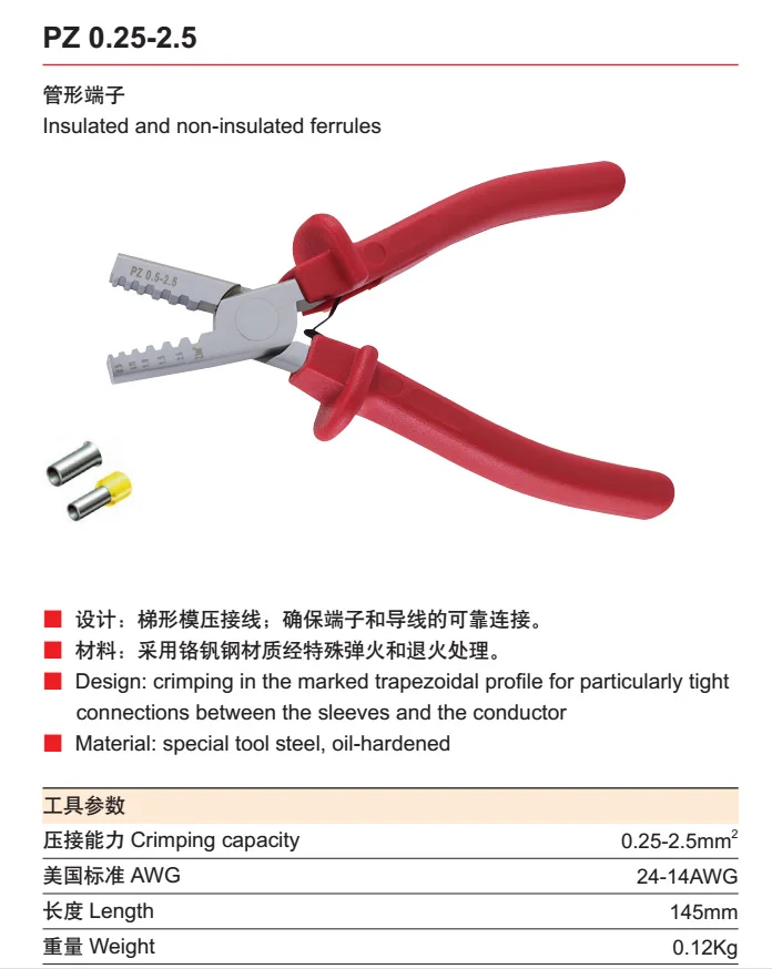 7 Диапазон обжима:0,25-2.5mm2 0,5-16mm2 1,5-6mm2 10-35mm2