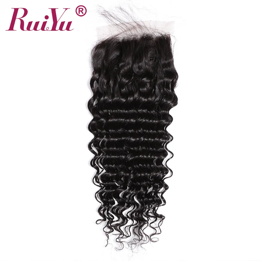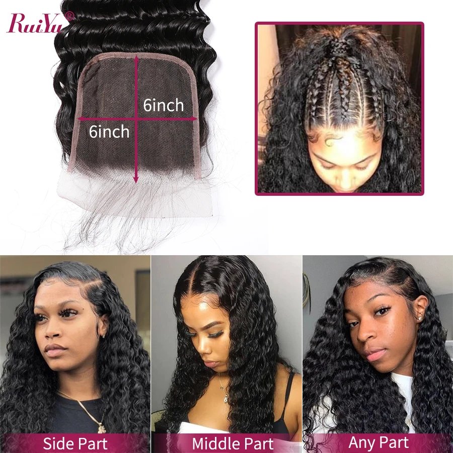 RUIYU глубокая волна пряди с закрытием 6x6 бразильские вплетаемые волосы пряди с закрытием человеческие волосы пряди с закрытием Волосы Remy