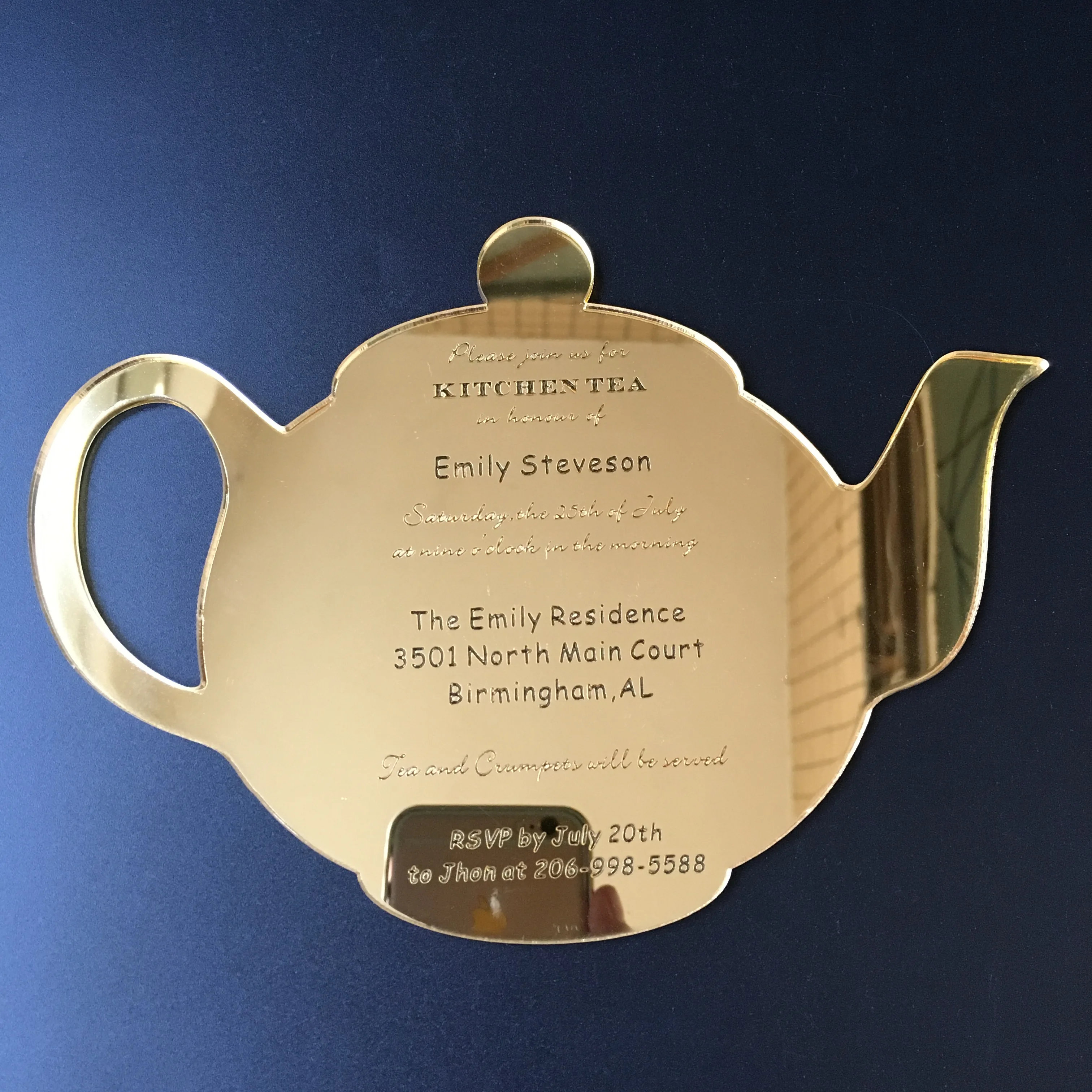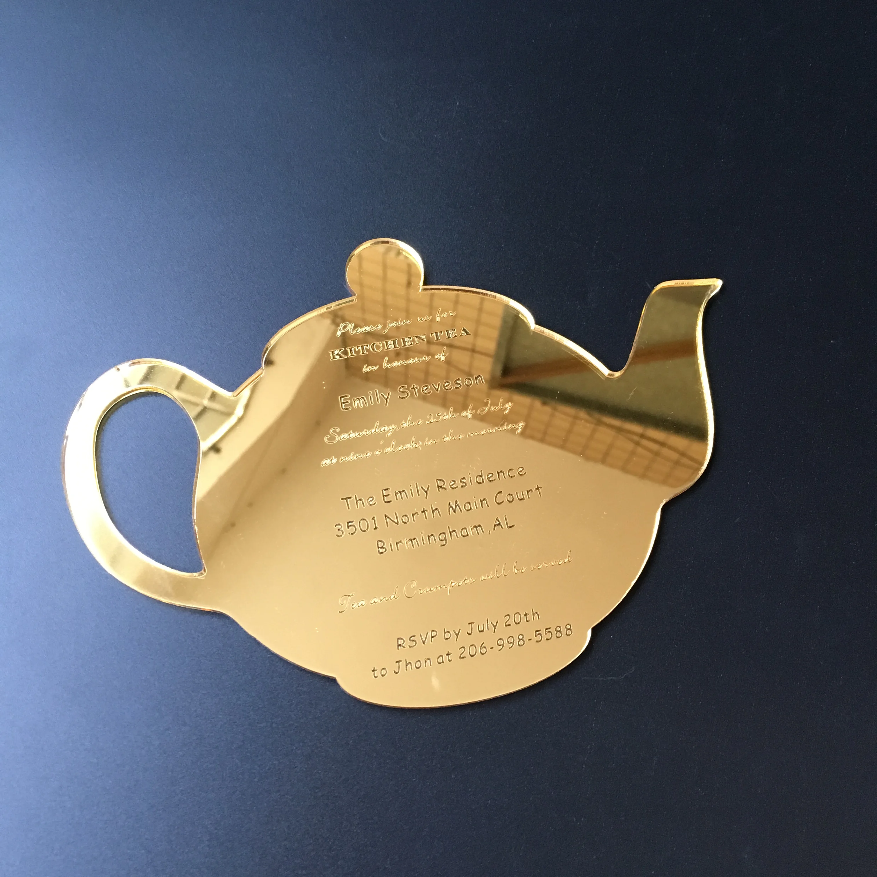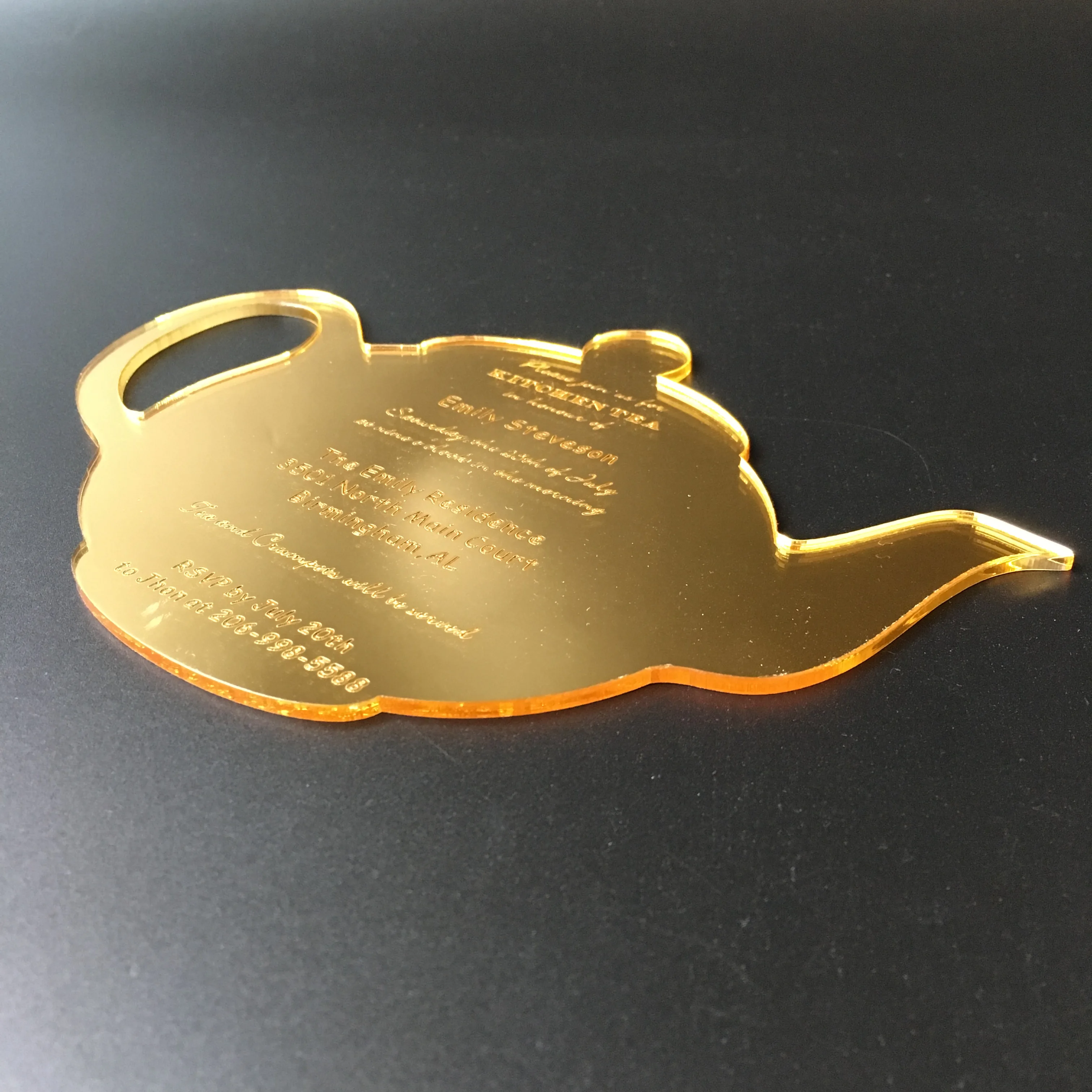 30 штук в партии Забавный чайный горшок форма Свадебный кухонный чай Золотое зеркало акриловые Пригласительные открытки доставка только в Австралию