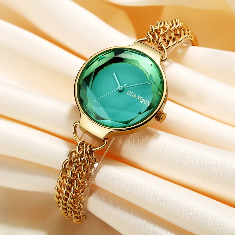 Женские часы с зелеными бусинами и кристаллами романтичные кисточками браслетом