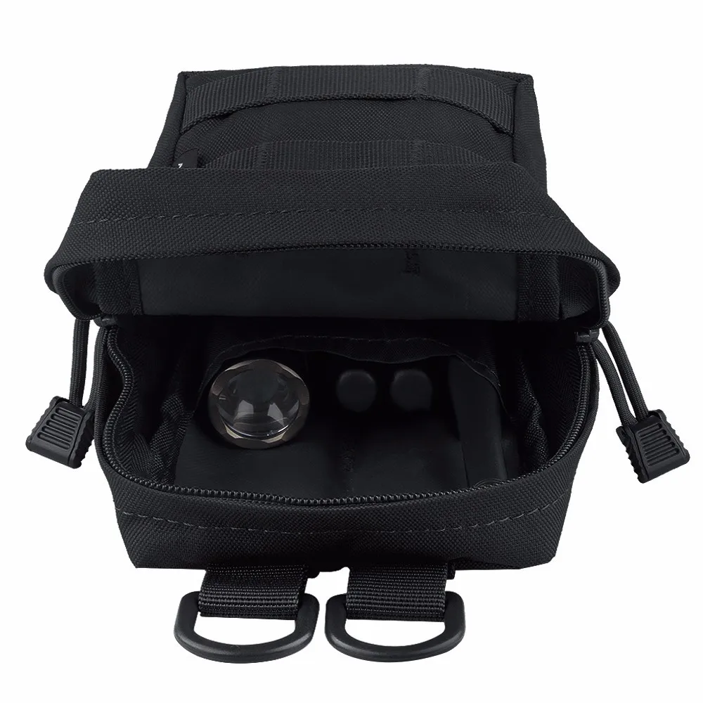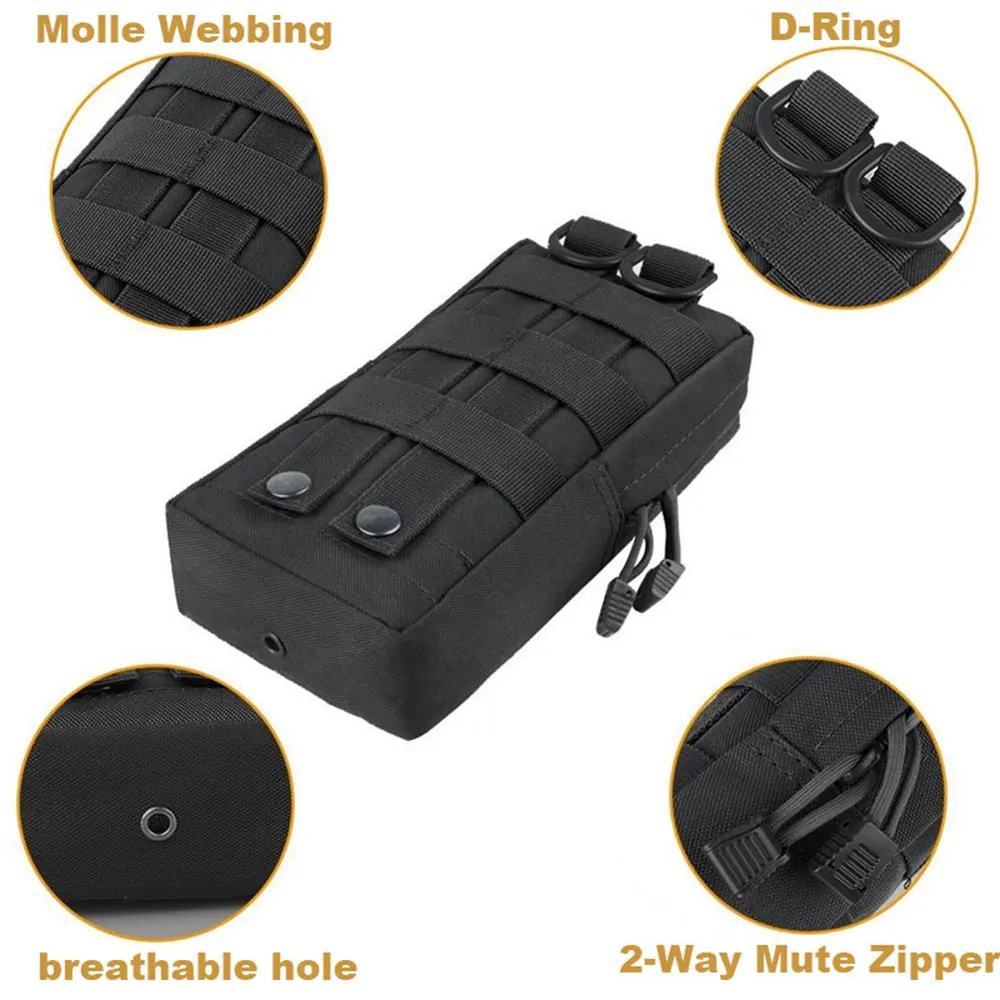 -- Высокое качество: Изготовлен из нейлона 600D, водонепроницаемый, прочный и износостойкий. Внутри с водонепроницаемым материалом и плавающими отверстиями -- Функция: Вы можете носить его в качестве ручного мешка или подключить его к боевому снаряжению; Храните ваши товары в порядке и в пределах досягаемости. Основной отсек и внутренний карман идеально подходят для хранения сотового телефона, тактической ручки, брелка, gps-устройства, цифровых камер, медицинских принадлежностей, патронов, паракордов или любых необходимых гаджетов. -- Система Molle: С 2 ремешками на спине, можно прикрепить к тактическому рюкзаку, поясу, боевому жилету или другим тактическим шестеренкам или носить его как обычный мешочек. -- Портативный: С маленький размер 21*11,5*6 см/8,3*4,5*2,4 В, который легко носить с собой С двухсторонними молниями в бесшумном шнуре тянет, легко надевать и вынимать предметы.