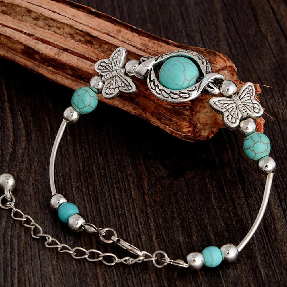 Silver Color Natural Stone Bracelets and Bangles Inlay Butterfly Bead Nation Bohemian Bracelets For Women Fine Jewelry