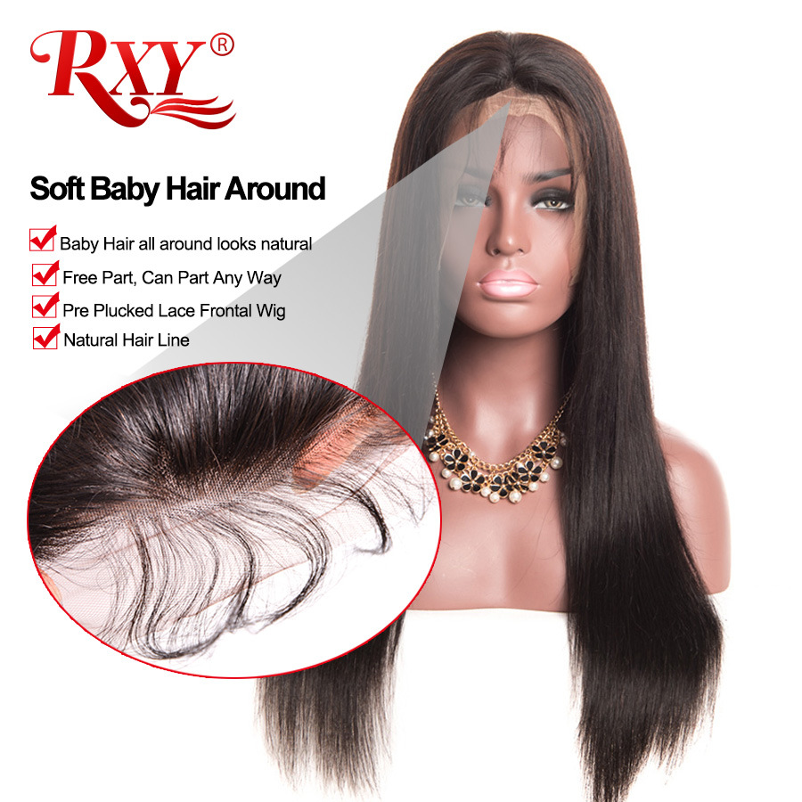 Парики из натуральных волос на кружеве без клея для женщин, черные малазийские прямые кружевные передние парики RXY Remy, предварительно выщипывающиеся швейцарские парики на кружеве