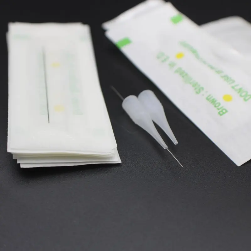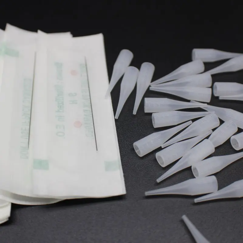 100 шт. 1RL иглы для татуажа бровей с 100 шт. Наконечник иглы Перманентный макияж колпачки для перманентного макияжа бровей губ тату машина