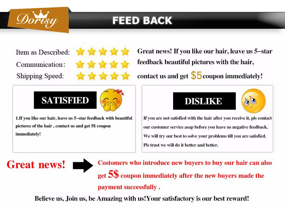 Магазина Dorisy Hair Store работает с 27.02.2018. его рейтинг составлет 89.3 баллов из 100. В избранное добавили 19880 покупателя. Средний рейтинг торваров продавца 4.6 в продаже представленно 484 наименований товаров, успешно доставлено 380 заказов. 215 покупателей оставили отзывы о продавце.