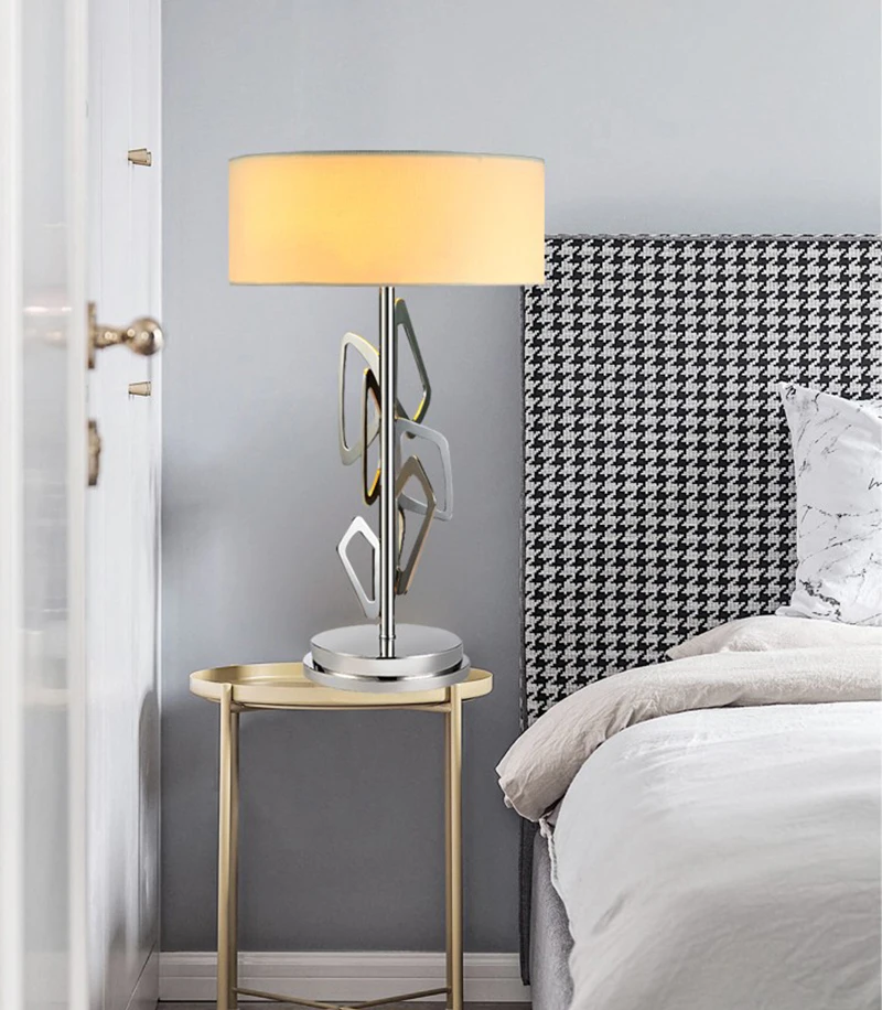 Скандинавский светодиодный настольный светильник, современный хромированный Настольный светильник из нержавеющей стали для фойе, спальни, учебы, креативный простой светодиодный светильник Параметры Американский креативный современный светодиодный Настольный светильник Светильник Размер: Dia.38cm × H.68cm Светильник источник: E27 Светодиодная лампа Материал: нержавеющая сталь/ткань Цвет корпуса: хром Применение: Отель, зал Чайный домик чайный бар Домашний декор осветительный прибор для гостиной паба Посылка включает в себя: 1 шт. современный простой стиль настольная лампа