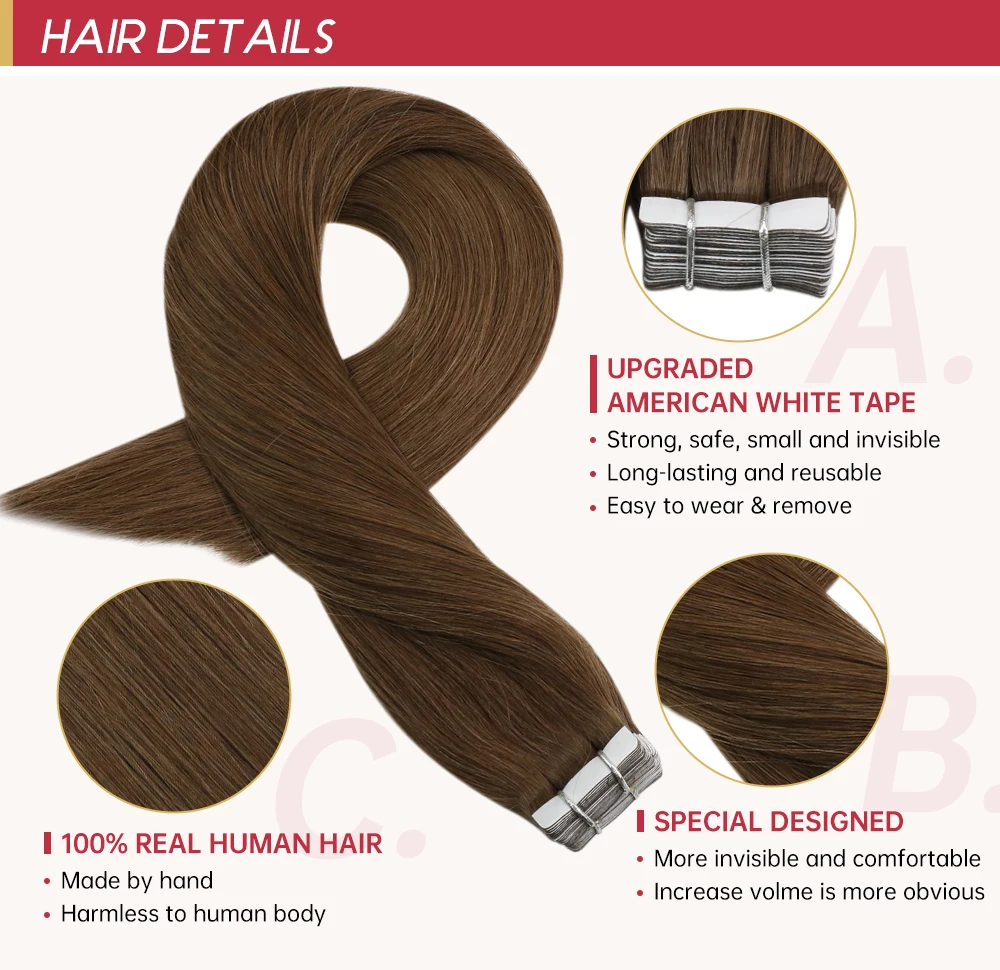 A:Лента для наращивания волос Moresoo использует самую прочную белую ленту. И это безопасная и удобная лента. Лента для наращивания волос является самым популярным способом в салонах. Наращивание волос на ленте является 100% натуральным и не требует никаких инструментов или химических веществ. Для нанесения всей головки с нулевым повреждением требуется менее часа.