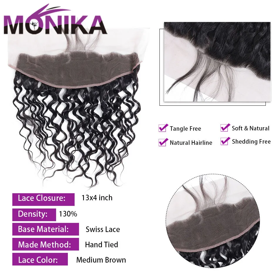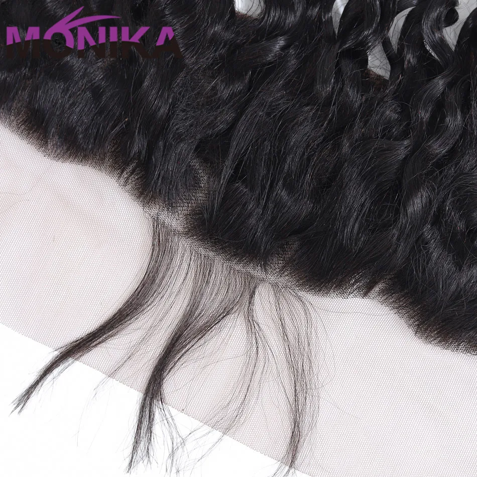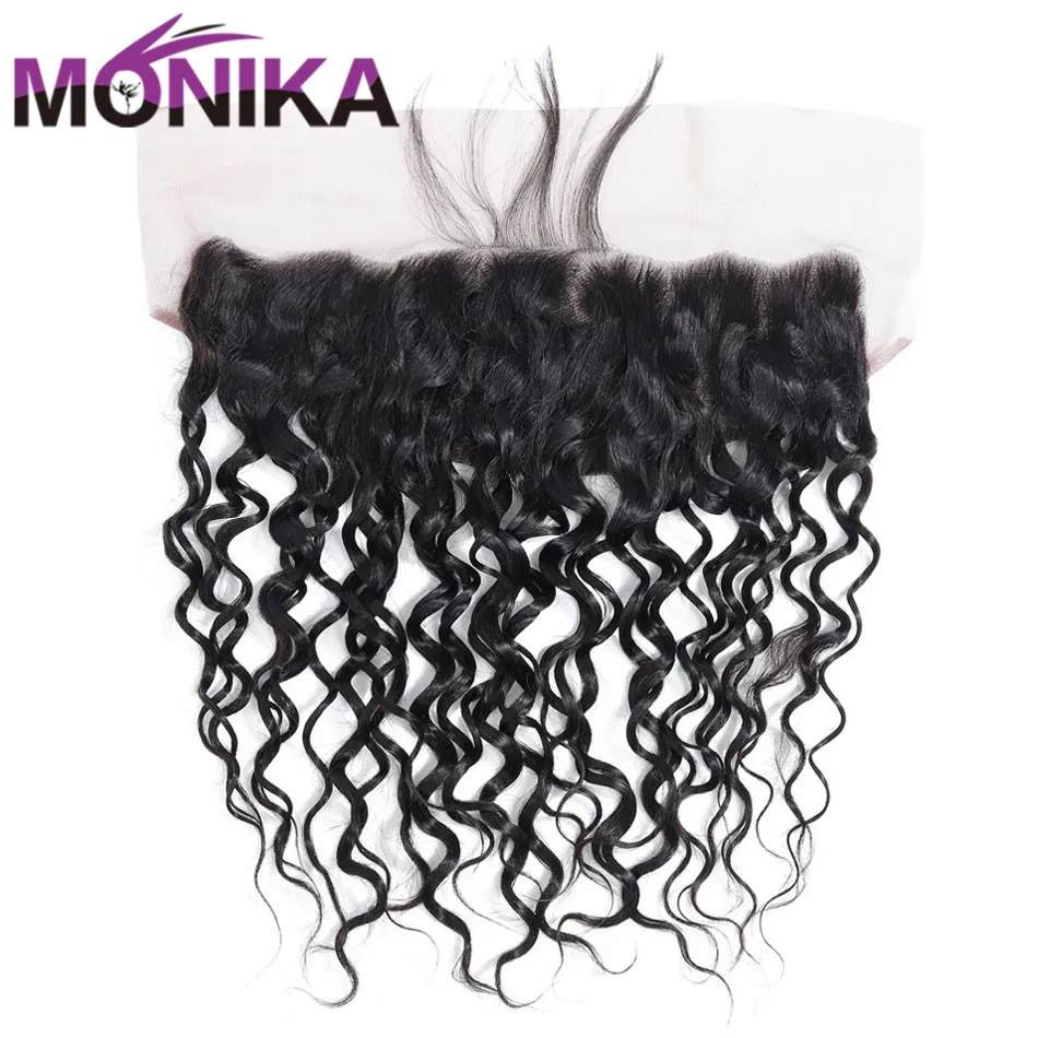 Monika волосы водная волна человеческие волосы кружева фронтальные волосы кусок уха к уху Кружева Закрытие фронтальные с детскими волосами 13x4 не Remy Frontals