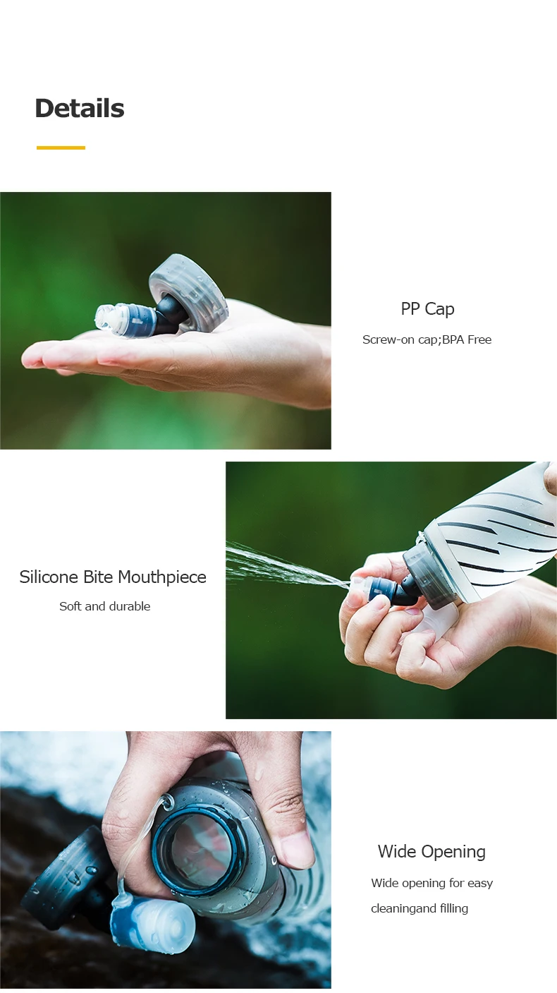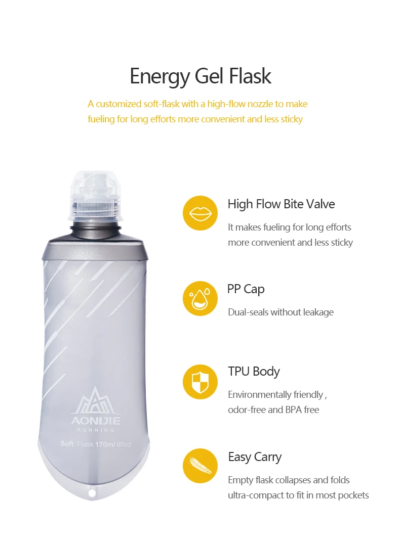 Водяная фляга AONIJIE «сжимается, чтобы пить» ведет себя как жесткая бутылка, но без долбежного эффекта воды и может быть сложена сама по себе, поэтому