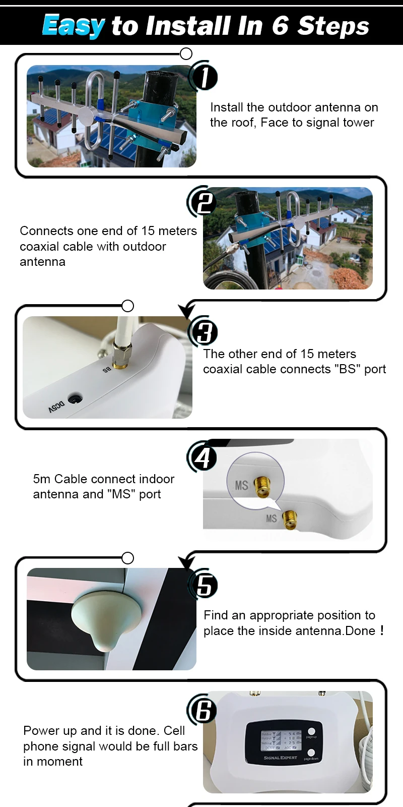 4.Indoor antenna connects "MS" port.