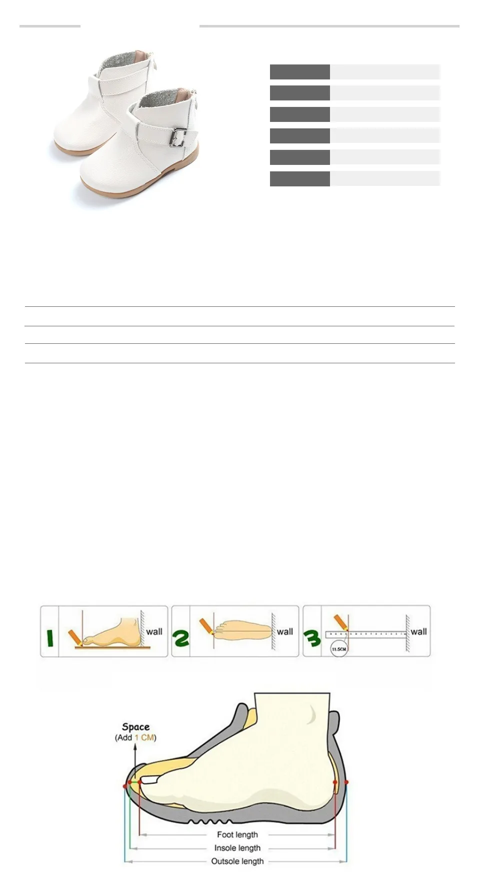 3. пожалуйста Измерения В Длина Из Ваш Ребенка Ноги, обратитесь Чтобы В Размер Из В Таблица Данные, И Затем Выберите В Обувь Для Ваш Ребенка.
