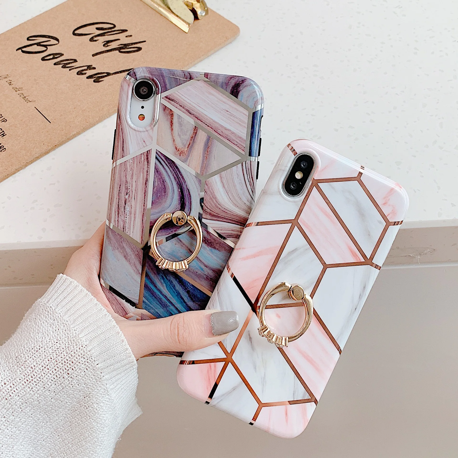 Позолоченный геометрический мраморный силиконовый чехол для телефона iPhone XR X XS 11 Pro Max 6 6 S 8 7 Plus чехол с держателем для кольца на палец