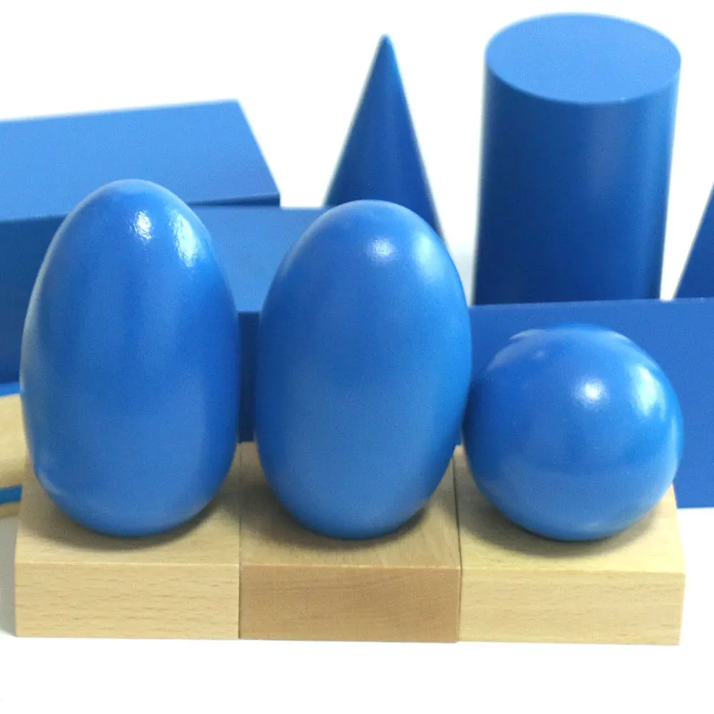 The Geometric Solids prepare a child for geometry, allows the child to compare different three-dimensional shapes, and improve concentration, coordination, independence, and problem solving skills.