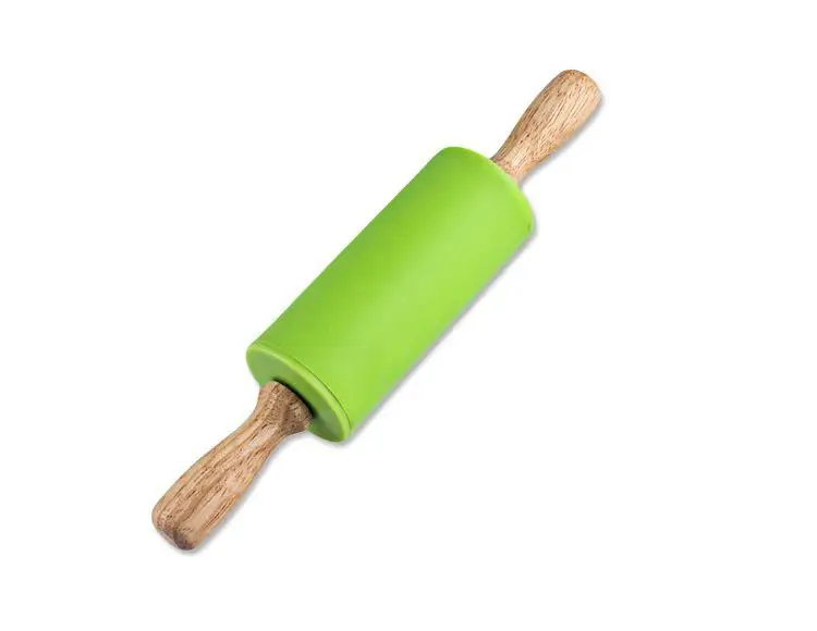 Антипригарная силиконовая Скалка с деревянной рукояткой помадка, кондитерские изделия, массажные ролики для теста для детей, инструменты для выпечки