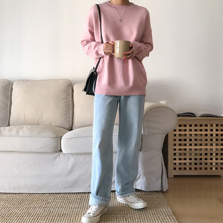 9 видов цветов, корейский однотонный вязаный свитер, Женский Повседневный Свободный теплый свитер с круглым вырезом и длинным рукавом