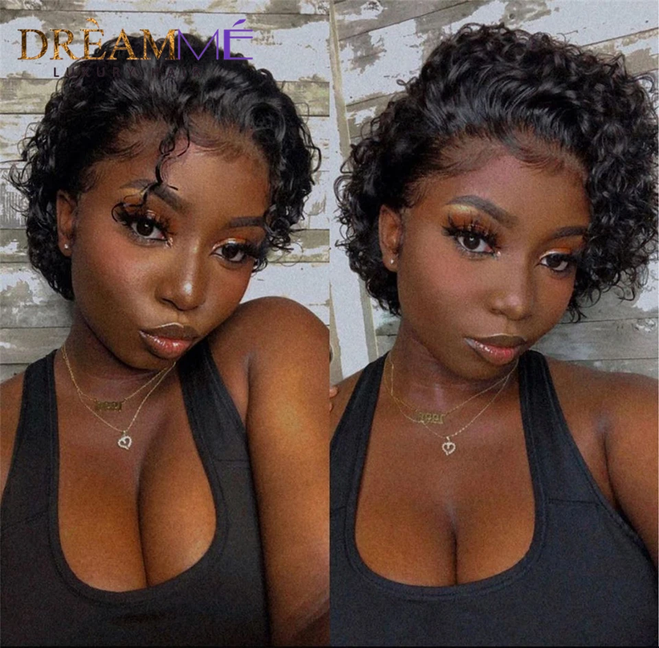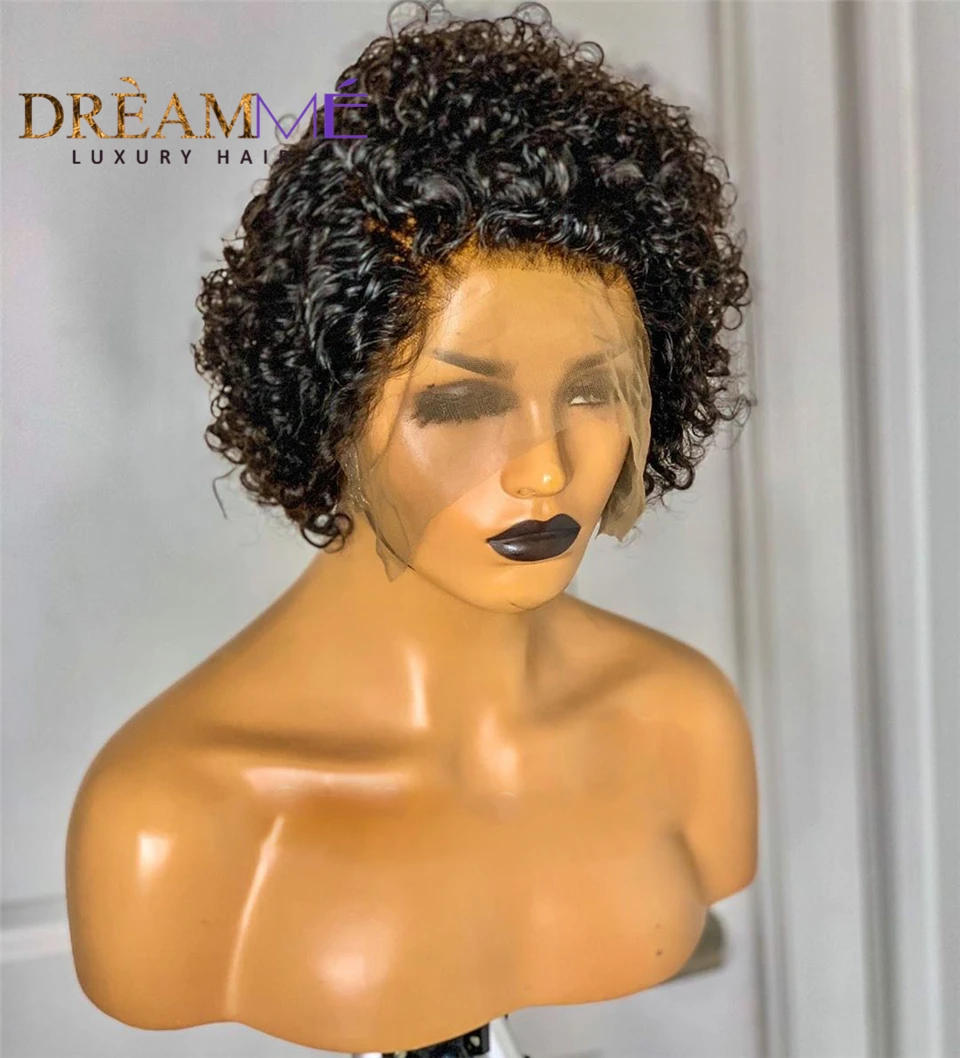150% dentisy 13x4 короткие кудрявые парики Синтетические волосы на кружеве человеческих волос парики для чернокожих Для женщин предварительно вырезанные перуанские Реми кружевные парики с челкой