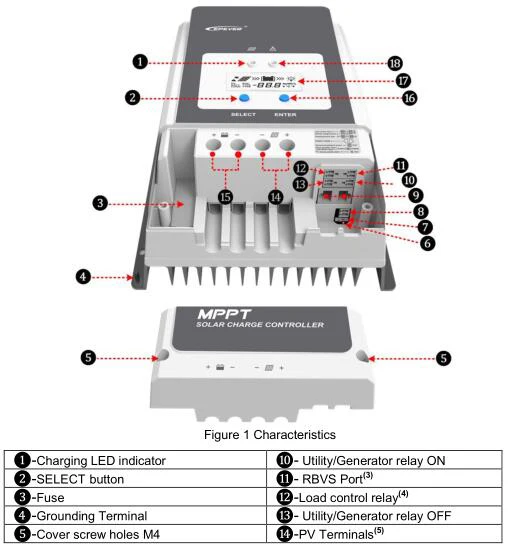 With the adaptive three-stage charging mode based on digital control circuit, Tracer AN series controllers can effectively prolong the life-cycle of battery and significantly improve the system performance. The load, utility or generator auto-control relays make it easy to compose the hybrid power system. All-around electronic protections, including overcharging, over discharging, and PV reverse polarity protection, effectively ensure the safer and more reliable operation of the solar system for a longer service time. The isolated RS485 interface with standard MODBUS communication protocol and 5V power supply makes it easy for customer to expand the application, it support up to 8 charging in parallel to expand system and meet with different monitoring requirements, so that can be widely used for various applications, e.g. solar RV, household system and field monitoring, etc.