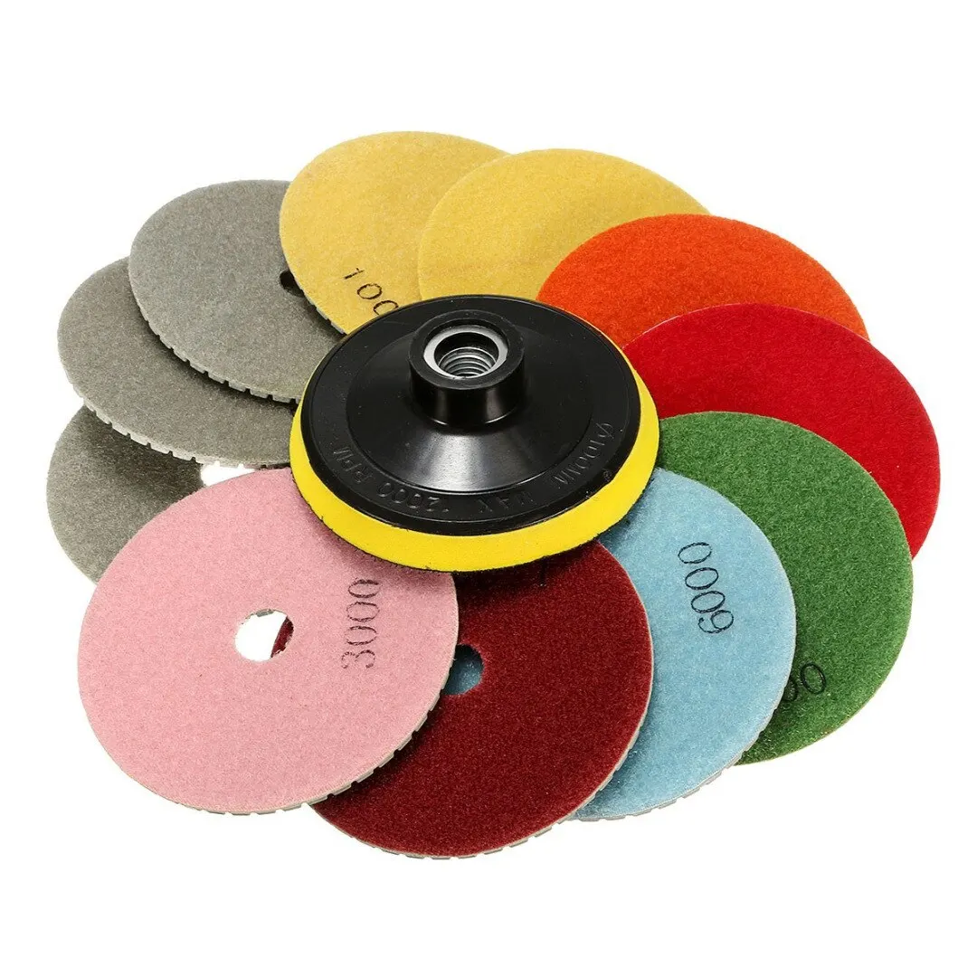 12 шт 4 ''/100 мм влажные сухие Алмазные полировальные колодки шлифовальный диск шлифовальный станок для гранитного камня бетонный полировщик для мрамора абразивные инструментыUS $25,29