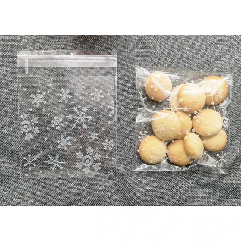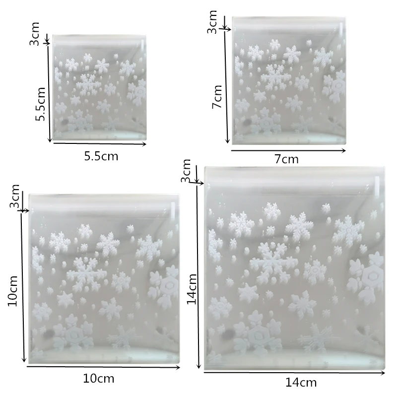 100 шт милый белый снег цветок конфеты печенье на десерт мешки Свадьба День рождения Ремесло самоклеющиеся Пластиковый упаковочный пакет для печенья