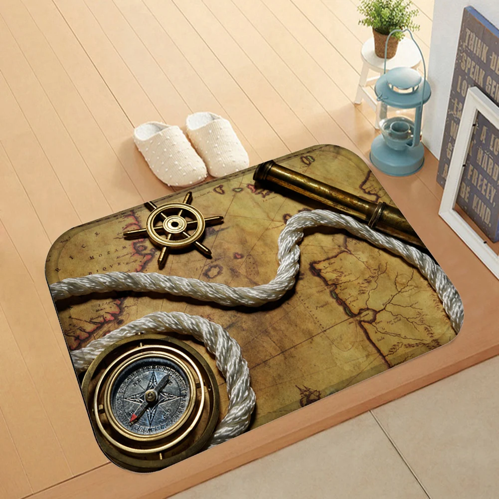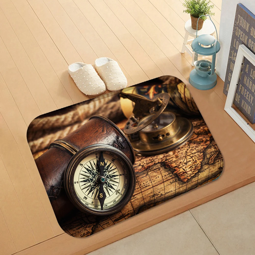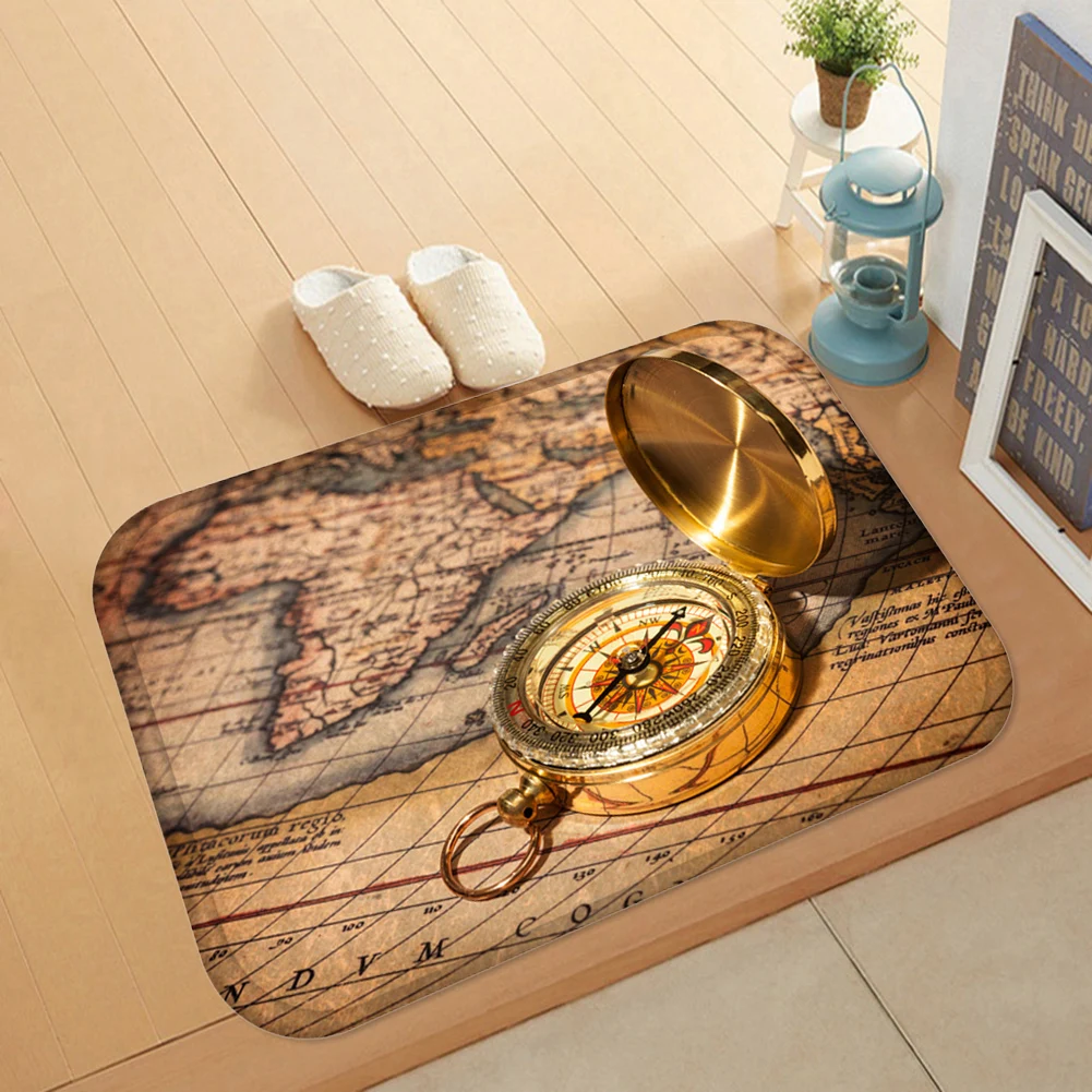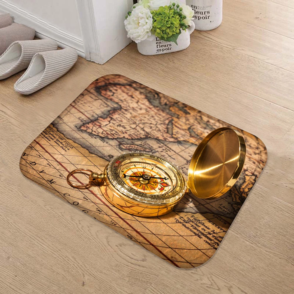 Ретро компас часы с картой для дома гостиной Противоскользящий коврик для двери ковер для входа