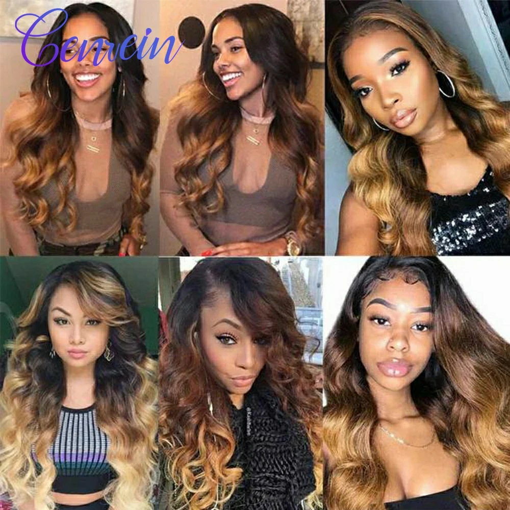Genrein человеческие волосы с эффектом деграде (переход от пряди 3/4 пряди перуанских волосы волнистые человеческие волосы 1b/4/27 Волосы Remy расширение Бесплатная доставка